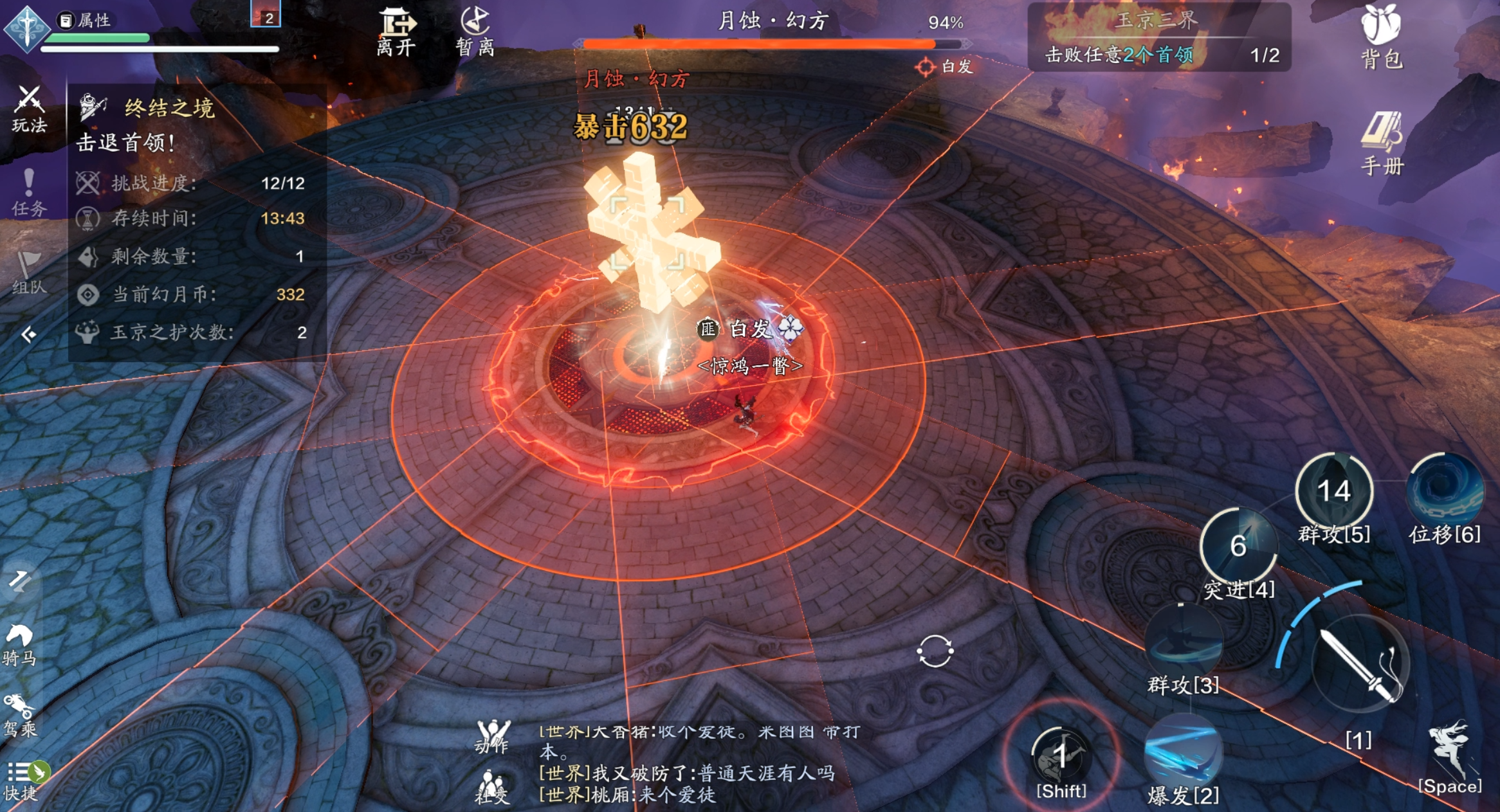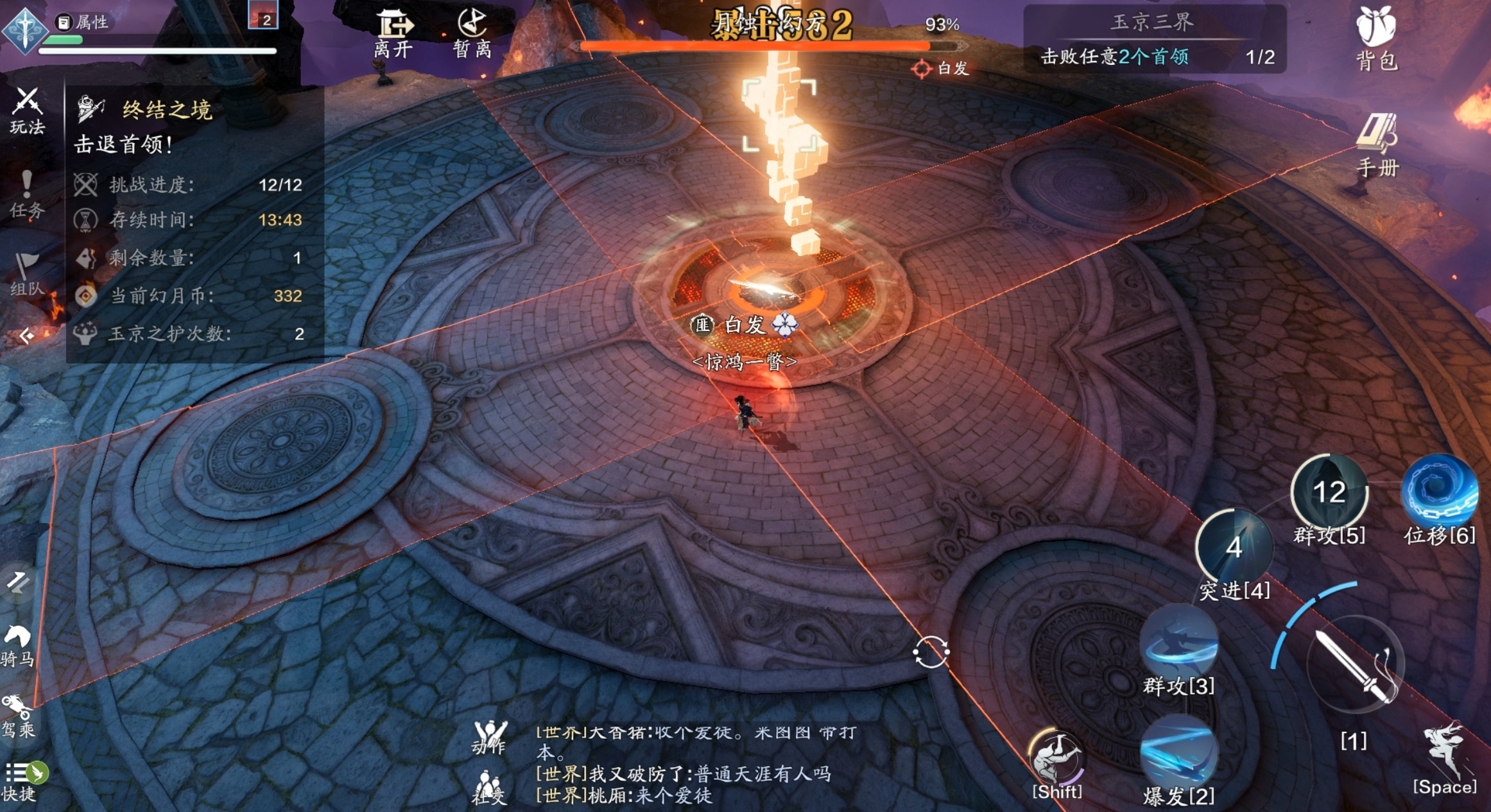 这个是最好躲的技能,幻方会连续3次往不同的方向释放矩形技能,该技能的安全空间比较大,少侠可以趁机输出首领。