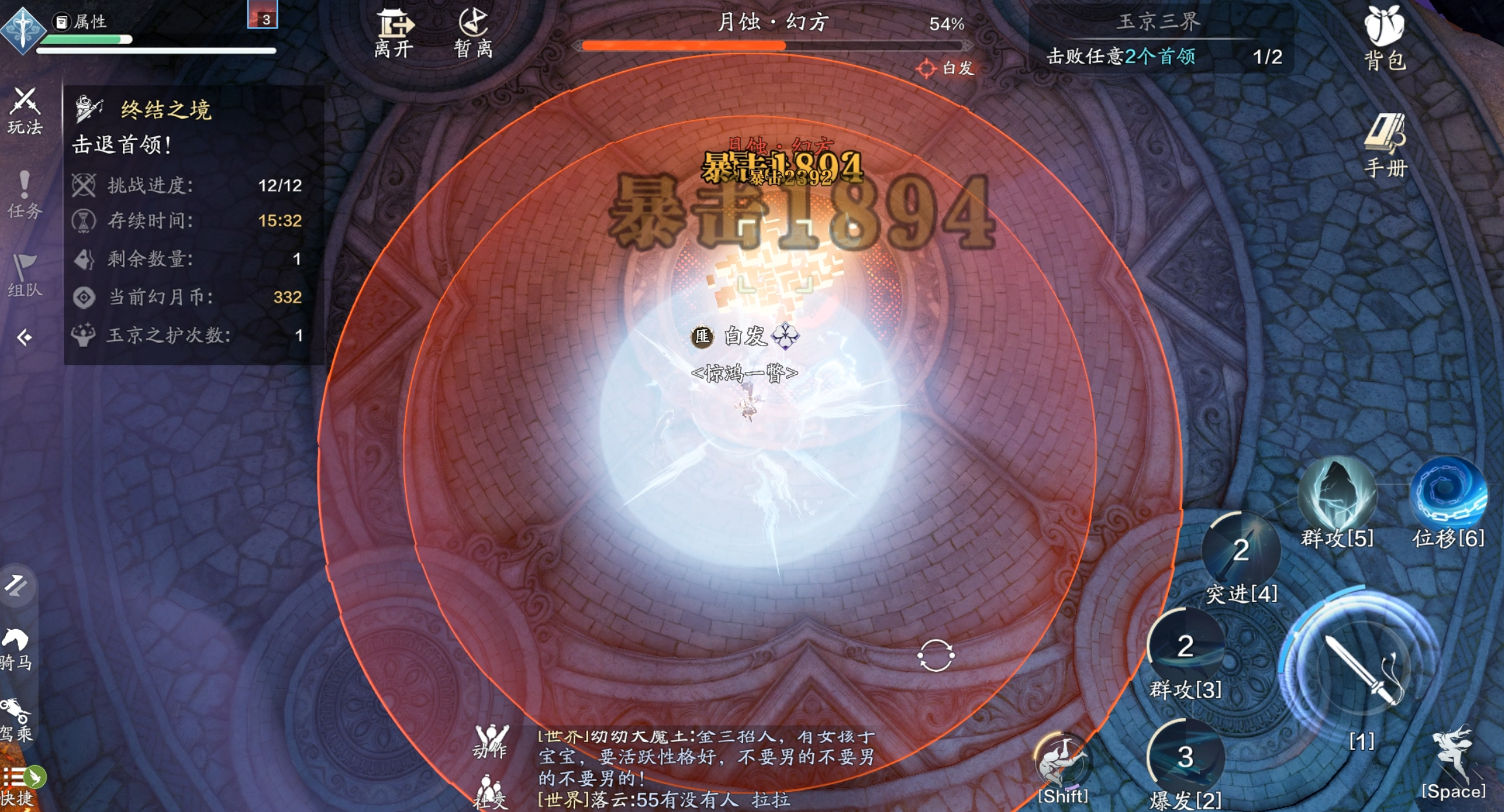 幻方会近距离对少侠释放小范围的圆形技能以及大范围的圆形技能,少侠一定要及时翻滚出技能范围。