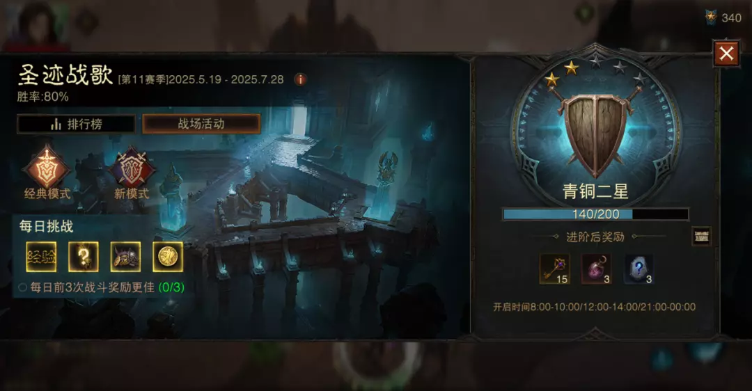 圣迹战歌为常驻玩法: