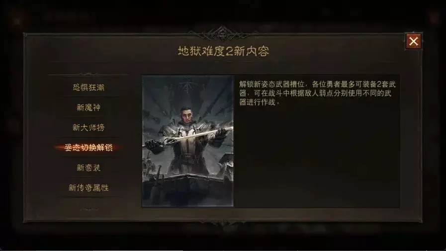 开启新的地图难度,可以解锁部分功能(比如地狱2解锁第二套武器,地狱3解锁手镯部位的套装装备),或是体验更多玩法。