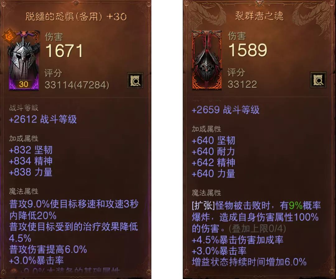 指参与“恐惧裂隙”和“深渊之眼”获得的,带魔神词条的装备。