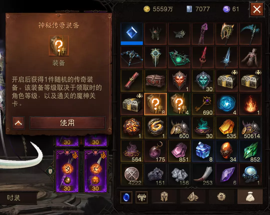 玩法小技巧之一,游戏内外活动时常会赠送“神秘传奇装备”和“神秘套装”,在背包的最后一栏可以查看。