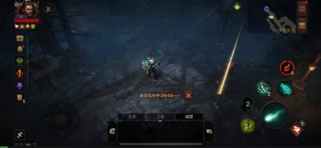 自动战斗按钮在屏幕的左下角,只在野外(非安全区)可开启。