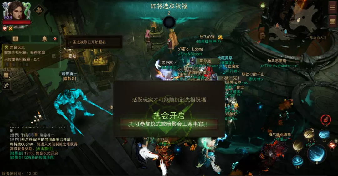 集会开启时间为周一至周六中午12:00-14:00、晚上19:00-21:00。新手必做,可以获得大量经验,以及神殿宝箱钥匙奖励,对于升级很有帮助。
