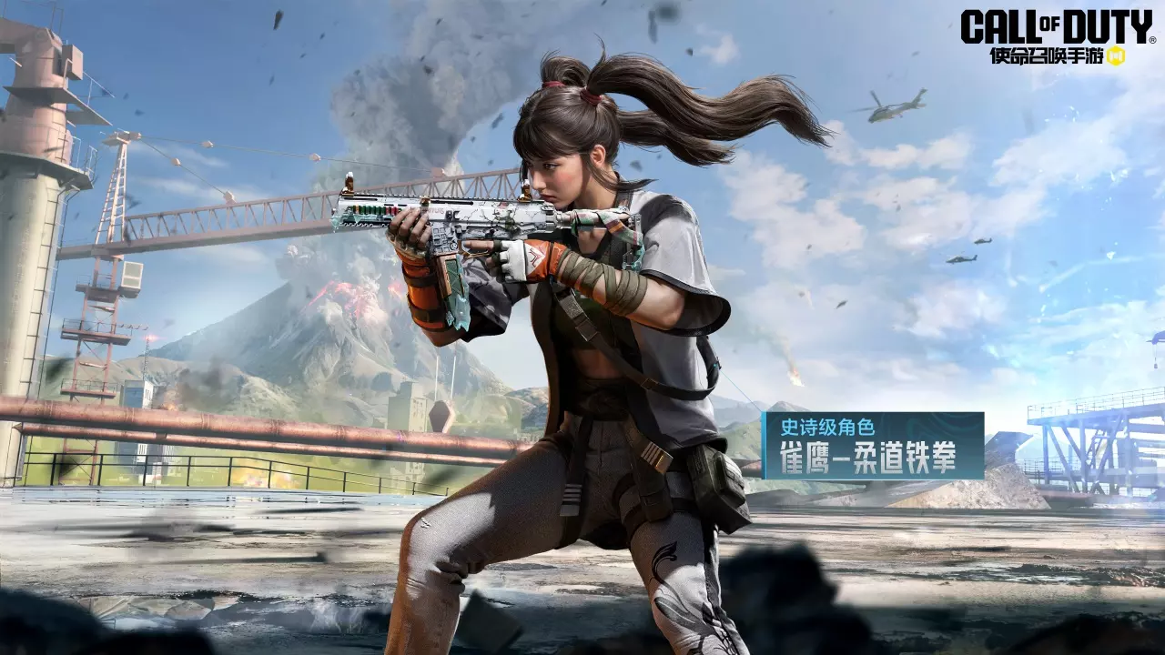 雀鹰-柔道铁拳身穿白色柔道服,搭配黑色腰带和绿色内衬。她的手臂和腿部装备战术护甲和战术包,将现代与传统进行融合。