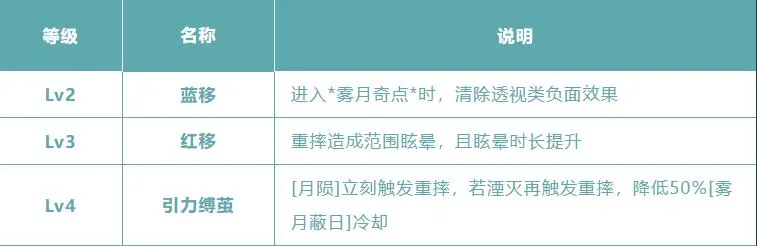 ——*衍生技-月陨*:使*雾月奇点*进入坍塌态,缩小至一半后湮灭,范围内所有玩家受指向中心的强力拖拽,追捕者落地必定触发重摔。