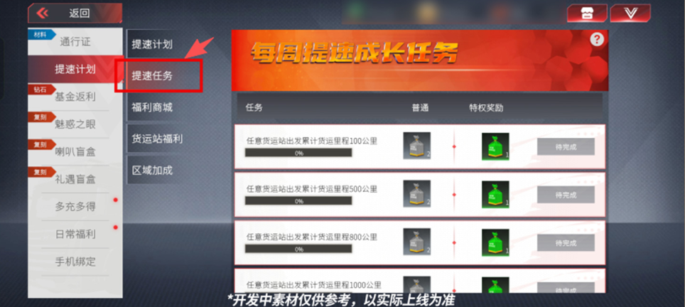 新增“提速计划”活动专区,包含提速计划、提速任务、福利商城、货运站福利(货运站友好度提速奖励)、区域加成(开疆拓土)五大全新子功能,为大家带来更多全新不同的福利及活动内容。