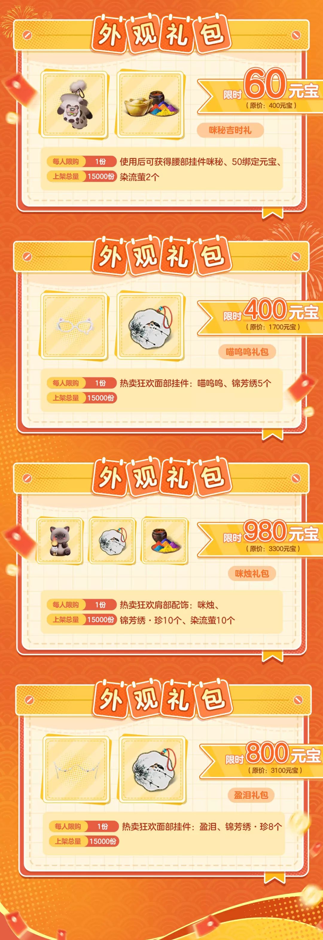 3.此外,本次活动期间,累计消费元宝达到指定额度,将逐步解锁四档尊享礼的购买权限。