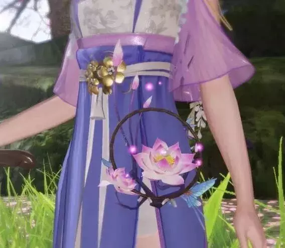 由数支傍晚的荷花制成,荷花并蒂而开,梦蝶栖与花边,点点星光萦绕在花上,为少侠营造一份黄昏后的浪漫。