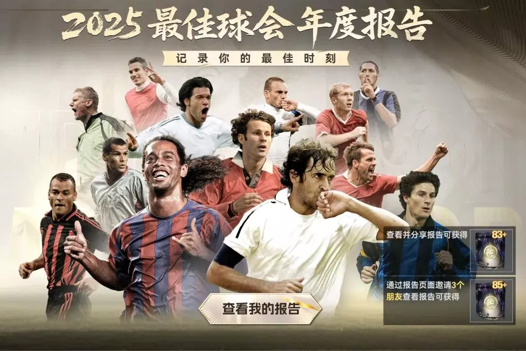 1月5日10:00-1月18日23:59期间点击游戏内活动入口,即可一键生成你的年度专属报告。回顾你的最佳时刻。查看并分享报告即可获得【83+】年末狂欢混合球员包。分享有礼,福利升级!将你的报告页面分享给好友,成功邀请3位主帅查看报告即可获得【85+】年末狂欢混合球员包
