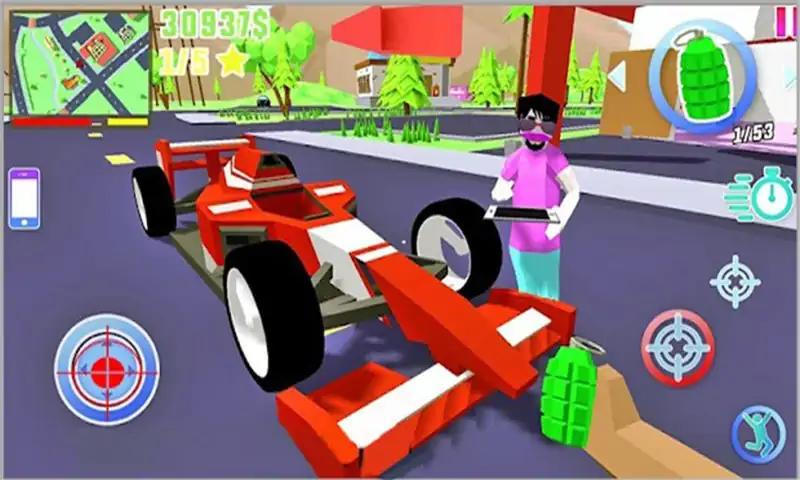 你可以开着任何你想开的车在镇上兜风,在小镇、公园、田野和充满幸福的3D城市里自由漫步, 用现金购买任何你喜欢的武器,在这个城市里惩恶扬善,成为一个英雄, 或者看着城市的居民“奔跑”,探索美丽的建筑,或者只是依靠智能手机悠闲地度过一天!