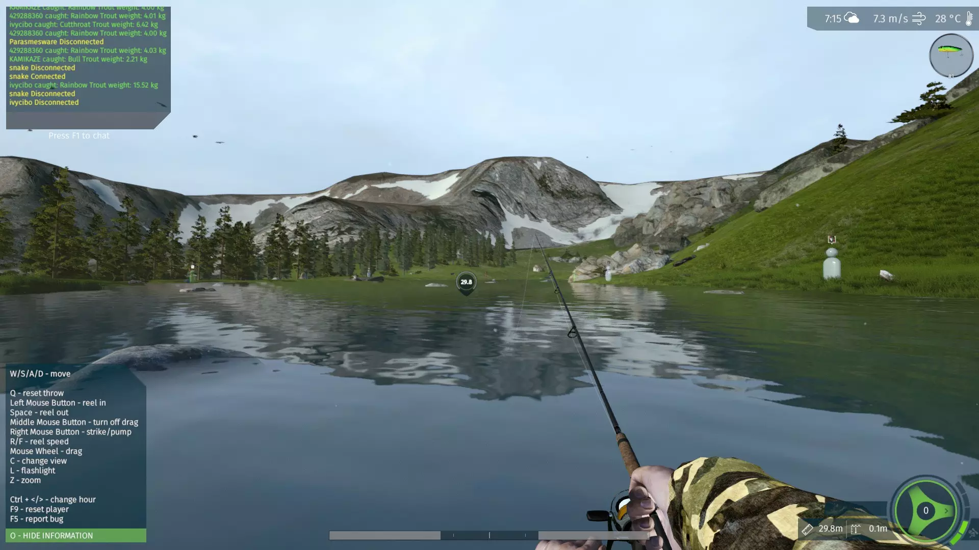 禁止使用诱饵!这是一份简短指南,列出了在湖泊中捕获全部11种鱼类的位置、拟饵和技巧。祝您游玩愉快!溪红点鲑 位置:1 拟饵:硬饵 - SCB Crank 200F - 直收(2);硬饵 - Pop N Dog - 直收(2) 尺寸:2 棕鲑 位置:1、4、6 拟饵:勺型饵 - DAKINO QRT2 - 抽动;飞蝇饵 - PANIT Fly MER-2 - 饰带式 - 直收(2);飞蝇饵 - OKENA EE-B - 湿式 - 直收(2) 尺寸:2 - 2/0 牛鲑 位置:1、6、7 拟饵:软饵 - Tex'Shad - 提放;硬饵 - SCB Crank 200F - 直收(2)/抽动 尺寸:2 - 3/0 割喉鳟 位置:1、3、4 拟饵:旋转亮片 - Bellamy Micro Swim Jig - 停收;摇摆饵 - Tailspin - 直收(2);硬饵 - OKENA PP-176 - 直收(2);硬饵 - SCB Crank 200F - 抽动 尺寸:4 - 2/0 金鳟 位置:1、3、4、6 拟饵:软饵 - KUBOT M-15T - 直收(2);旋转亮片 - Cajun Double Indiana - 直收(3);软饵 - Tex'Shad - 提放狗鱼 位置:湖的后沿各处 拟饵:硬饵 - DAKINO R-903 - 直收(2)/抽动,硬饵 - SCB Crank 200F - 直收(2) 尺寸:2 - 3/0 虹鳟 位置:3、4 拟饵:硬饵 - SCB Crank 200F - 抽动,硬饵 - Rush Diver 150F - 抽动 尺寸:2 - 5/0 北美凸鲈 位置:1 - 4、6 拟饵:硬饵 - Bomba Crank 70F - 直收(4)/提放;硬饵 - Phoxy Minnow HW 40S - 慢速直收;硬饵 - DAKINO R-903 - 直收(2)/抽动;勺型拟饵 - DAKINO QRT2 - 直收(2);尾旋拟饵 - 直收(2);飞蝇拟饵 - PANIT Fly DY-3 - 干式 - 抽动;硬饵 - OKENA PP 176 - 直收(2);勺型拟饵 - Soukouss Blade 45S - 直收(2);软饵 -Gobygo - 直收(2) 尺寸:6 - 2/0 虎鳟 位置:4 - 7 拟饵:硬饵 - OKENA PP-178 - 直收(2);硬饵 - Bomba Crank 70F - 抽动;旋转亮片 - Monarc Micro - 抽动;飞蝇饵 - OKENA EE-B - 湿式 - 直收(2);硬饵 - OKENA PP 176 - 直收(2);勺型亮片 - DAKINO QRT2 - 直收(2) 尺寸:4 - 3/0 大眼梭鲈 位置:1、2、3 拟饵:硬饵 - Phoxy Minnow HW 40S - 直收(3);硬饵 - Pop N Dog - 直收(2)/抽动;硬饵 - SCB Crank 200F - 直收(2) 尺寸:6 - 1/0 黄鲈 位置:1 - 5 拟饵:旋转亮片 - Bellamy Micro Swim Jig - 直收(4);旋转亮片 - DAKINO W/U-17 - 直收(3);硬饵 - Phoxy Minnow HW 40S - 抽动;勺型亮片 - DAKINO QRT2 - 直收(2-3);硬饵 - OKENA PP176 - 直收(2-3)/抽动;硬饵 - SCB Crank 200F - 直收(2) 尺寸:6 - 2/0