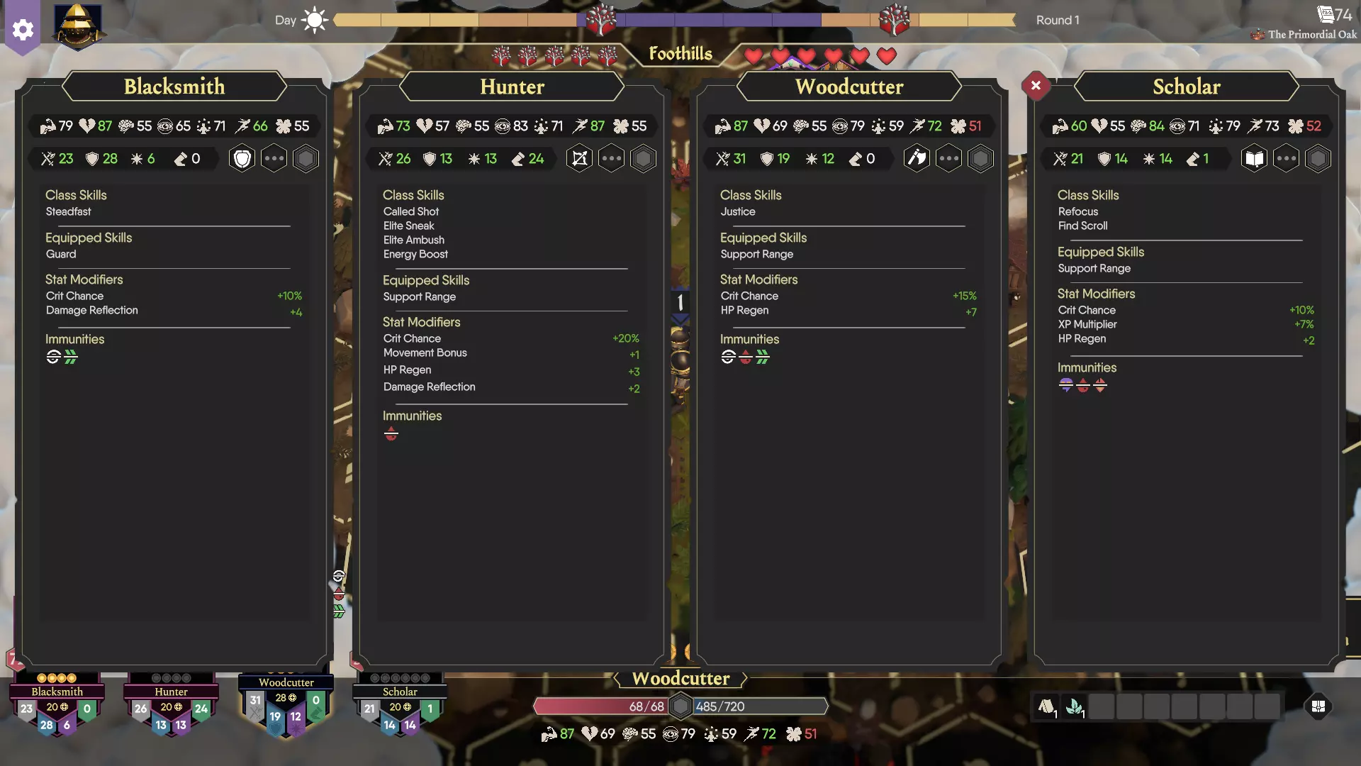 This is a step by step guide to completing Chapter 2 (The Primordial Oak) on Master Difficulty. Chapter 2 Introduction Chapter 2 - The Primordial Oak As this is a Master Guide for Chapter 2, it is expected that the player has all the characters and Traits unlocked, all the Grand Sanctums and plenty of Loadout items unlocked. Mission Challenge - Chapter 2 is a race against time. Movement efficiency is key. The map is large and expects the player(s) to make full use of Landboats for team movement. Typical Problems - Chapter 2 on Master Difficulty presents several problems. The Oak Tree Chaos is rapid. In order to extend the amount of time players have to gain Xp for levels and grind for better gear loot, you MUST remove Chaos at every opportunity. This means finding every Catapult around each of the Siege towns as you move from one to the next. Scourges increase by 2 levels after each scourge is defeated. The first scourge will be level 1. The 2nd will be level 3. The 3rd will be level 5 and so on. As the party will be hard pressed to gain Xp and loot due to the requirement to speed through the mission, it is highly recommended to enter the Primordial Oak without fighting the level 5 Scourge. Once they get to level 5 they’re extremely deadly. Therefore, you’re racing against the Scourge activation just as much as you’re racing against the Chaos. In fact, often it is the Scourge activation that is more pressing. Gaining Xp and loot is challenging as you MUST keep moving. The best way to gain Xp and loot while traveling as a team in your Landboat is to attack level 3 and level 4 enemies along the road paths as you move from one Siege town to the next. Once you reach level 3, these combats will become easier and easier as you move. The most difficult part of this mission is surviving through the first siege town (Sanctuary Moon). If you can survive that first siege town, you have a great chance of winning the mission. Much of the guide below is focused on helping you survive this first siege town. Party Composition You are free to pick the team composition you feel most comfortable with, though certain character classes are likely to be more valuable than others for this mission on Master Difficulty. Let's first talk about the roles you want to try to include for your team. Roles: Tank You’re going to want some way to absorb enemy damage (or avoid it). You can create either a ‘sponge’ who absorbs the enemy attacks or an ‘evader’ who dodges enemy attacks. The Sponge - For a sponge tank, it is usually good to go with a high vitality character. The sponge is going for high armor levels for both physical and magical attacks and will ‘frontline’ with a shield. High speed is a benefit as it will allow this character to Taunt enemies before they attack your party. A Friar, Stablehand, or Hobo is a good choice for this role, though you can choose any class you prefer as long as they are stacked with the most armor you can find while also using a one-handed weapon and shield. As this character will ideally use a shield and use a one-handed weapon, you have the option of Traits to help benefit this sponge tank. Lucky trait opens up the possibility of using a Toy Warhammer as the one-handed weapon, which if found can be a massive boon. Nimble offers an extra secondary action which can allow this sponge tank to get in front of a hurt teammate quickly. Gifted boosts the stats for the Sponge to increase speed and vitality. This also opens up the Strength stat to be viable for the Friar. The Evader - For a dodging evader, you’re stacking them with as much evasion gear as possible to get evasion percentage above 50% and ideally much much higher. The issue with evasion tanks is that the armor that provides evasion is usually low with physical armor and magic resist. Therefore, until you’ve increased the evasion to at least 50%, this character will have a hard time fulfilling the Tank role (especially during the early stages of the mission). In general we recommend you try to build both! Allow the sponge tank to carry you through the early stages of the mission and transition to the evader once they’re set up properly (high evasion with shield to taunt). Recommended traits: Lucky, Nimble, Gifted, Eager. AOE Attacker It is very important to eliminate large groups of enemies quickly. The best AOE damage dealers use Magic weapons often in the Intelligence or Talent stats. It is highly recommended to have at least 2 characters that can deal AOE magic damage. Good choices are Scholar, Herbalist, Alchemist, Minstrel, or Hobo. It is also possible to run Awareness characters for AOE damage as well, which opens up many options for character class choices. In general we recommend Intelligence characters as there are several very powerful Staves as well as amazing Tomes available. Recommended traits: Deep Thinker, Navigator Landmark finder The map for Chapter 2 is huge and you MUST find the Catapults to reduce chaos as well as locate Scourge Haunts, Statues, Sanctums, and even Alluring Pools to help with map movement. This mission was designed with the Pathfinder in mind, and we do recommend trying to fit this character into your team for this mission. A Pathfinder isn’t a requirement for this mission, it just comes in handy. Ideally you should try to accumulate Find Distance items and when moving across the map during any character’s round, give that character those Find Distance items during their turn. This requires micro-management of items, trading them from one character to the next, so this may not be for everyone. Healer What team wouldn’t benefit from a Party Healer? Is the Herbalist required for this mission? Well no, but it sure helps a great deal. An Herbalist can double as an AOE magic attacker and can also use Awareness Bows quite effectively. (Tip - Herbalists should always be given a back-up bow to deal physical damage to high magic resist enemies). There really isn’t any