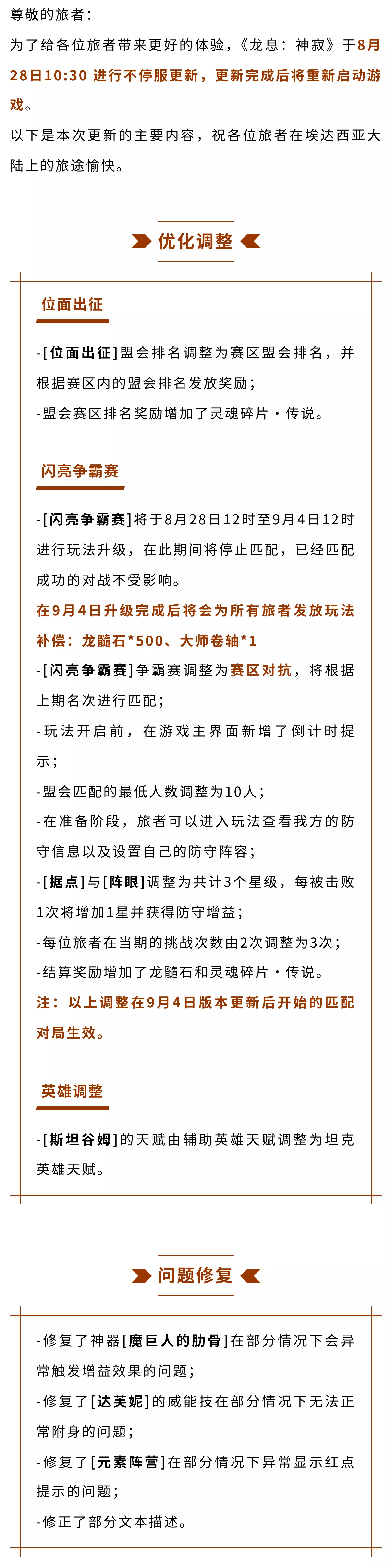 《龙息:神寂》8月28日更新公告