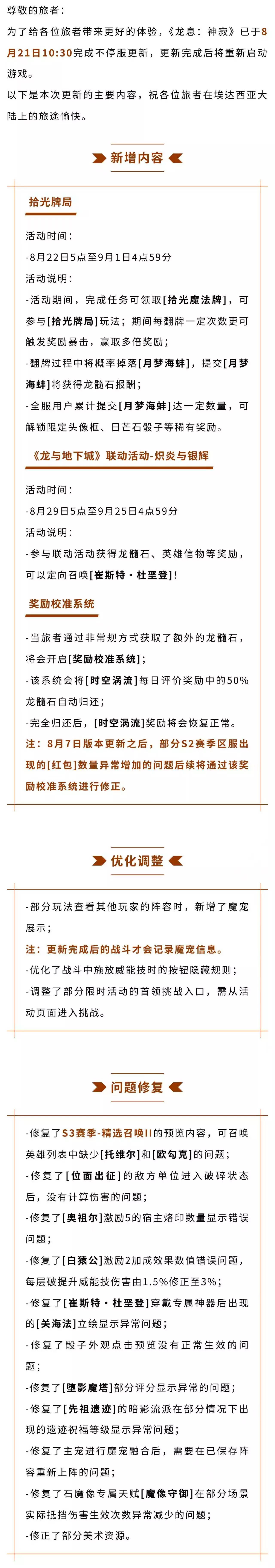 《龙息:神寂》8月21日更新公告