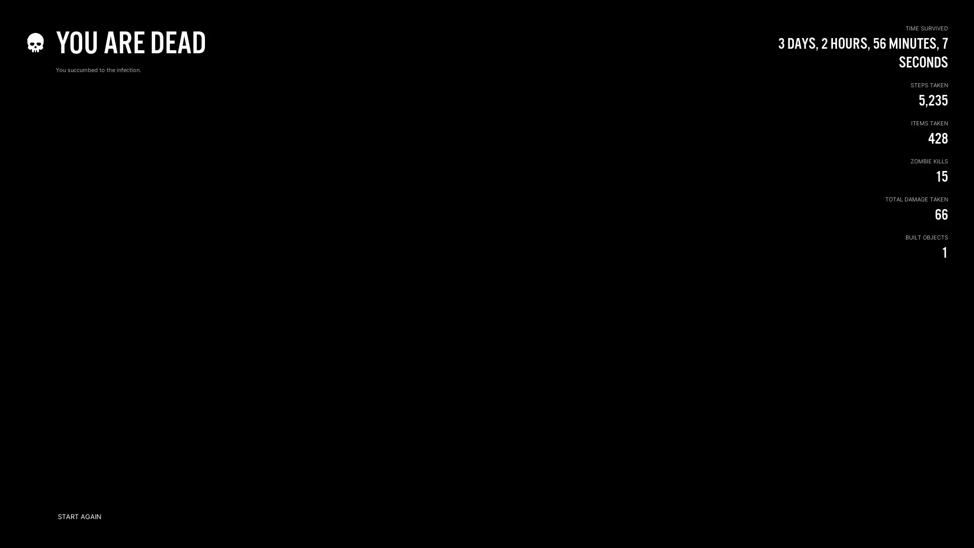 Fix duplicate "Items Respawn" setting Fix UCs damaging each other inside each other's radii Fix "Dismantle All" not being disabled properly like "Dismantle" Significantly reduce RAM usage Fix broadcast radio items on Farm Fix kerosene heater not consuming fuel Fix wrong notification when extinguishing kilns/forges Fix utility cabinet jurisdiction being split when there are two utility cabinets close to each other Fix soil bag description saying "average quality" when that's not accurate Adjust dropped item locations so you can't drop an item inside yourself Fix floating riot helmet in prison Fix vehicles flipping out when parked in water after water freezes Discourage AI from pathing through water if there is a bridge available Fix falling through map when exiting overturned vehicles Fix one house with no snap points for construction Fix static workbench in prison workshop Fix mesh swappable containers (tire shelves, log storage, etc) not showing their contents Fix schematic bench not working properly in multiplayer Fix 'saving' notification not always going away Fix plants not always showing the correct mesh for what they really are (mature, dead etc) Fix overencumbered loot bags not receiving anything Fix equipped firearms' attachments having a floating attachment beside it Fix some incorrect vehicle exit positions Fix loot bags spawning when destroying locked containers Some texture fixes Fix vehicles flipping out when hitting zombies Fix car alarm being clearly audible through walls Hazmat suits now block sunburns Update main menu text/credits Fix flickering lights on windshields at night with headlights on Drying racks can now be used to dry towels faster 6x boost to explosive damage for scrap metal tier; reclassify AT4 damage profile as high explosive Fix withdrawing fluid from a fluid tank, rain collector, barrel etc. into an item Fix persistent corpse meshes/art Fix rain coming through domed warehouses Fix being able to refill containers from frozen lakes Fix floating when sitting on a specific sofa Add better tooltips to medical menu flags Fix zombie hair appearing when you loot their clothes Fix juicer physics when placed on a vehicle Fix being able to wash yourself in fluid containing items that are frozen Fix floating corpse in Lyon Mountain Detention Center Strength and vitality XP are now scaled by the mass of the object you are moving Add utility cabinet upkeep readout to the HUD Reduce campfire volume Fix inverted door snap points on car dealership Reduce the speed of change of temperature in fluid barrels Fix character selection showing immediately after creation on dedicated servers Add "decaying" notification to tooltips on furniture if it is decaying Fix death location not showing up on compasses Fix UC menu structure requirements not being affected by perk multipliers Change "Insert battery" to be disabled rather than hidden if you have no batteries Fix incorrect assignment of UCs to structures (if you had two UCs, one indoors and one outdoors, the outdoors one would be prioritized) Fix incorrect UC visualizer on UCs built indoors, increase UC visualizer resolution Fix some ID cards Loot bags automatically remove themselves after 4 real life hours Fix server passwords being case insensitive Fix some gas/fluid tanks desyncing in multiplayer Fix being able to drag and drop non-tool batteries on tools Fix some bad power plant materials Fix weird physics in power plant Fix some logic with removing cameras Fix wooden bench name Add player character movement settings Fix switches disconnecting from lights in some instances Performance fixes Crash fixes