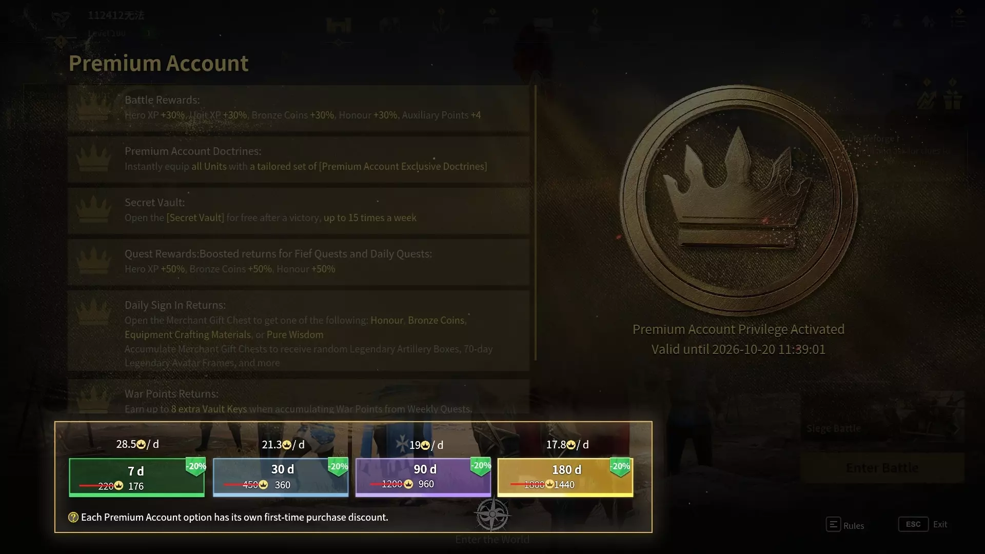 2. 增加了高级账号的福利,扩充了背包容量,优化了策略炼成系统