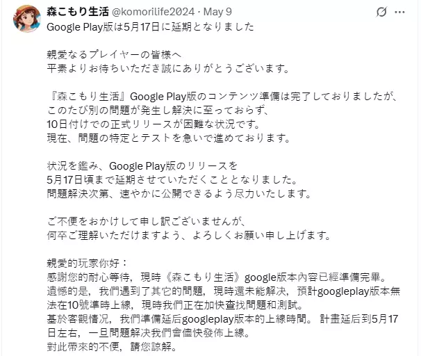 《小森生活》日服安卓版本延期至5月10日左右上线
