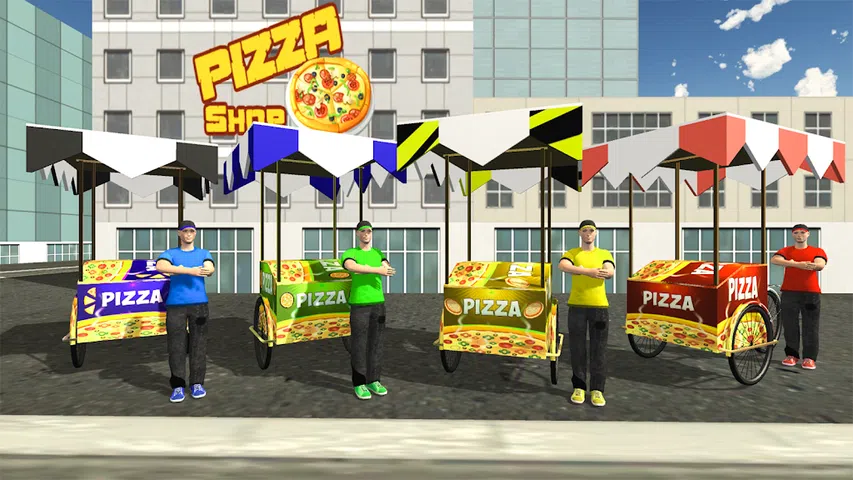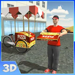 欢迎来到比萨饼交付自行车车:街头食品小贩3d社区!