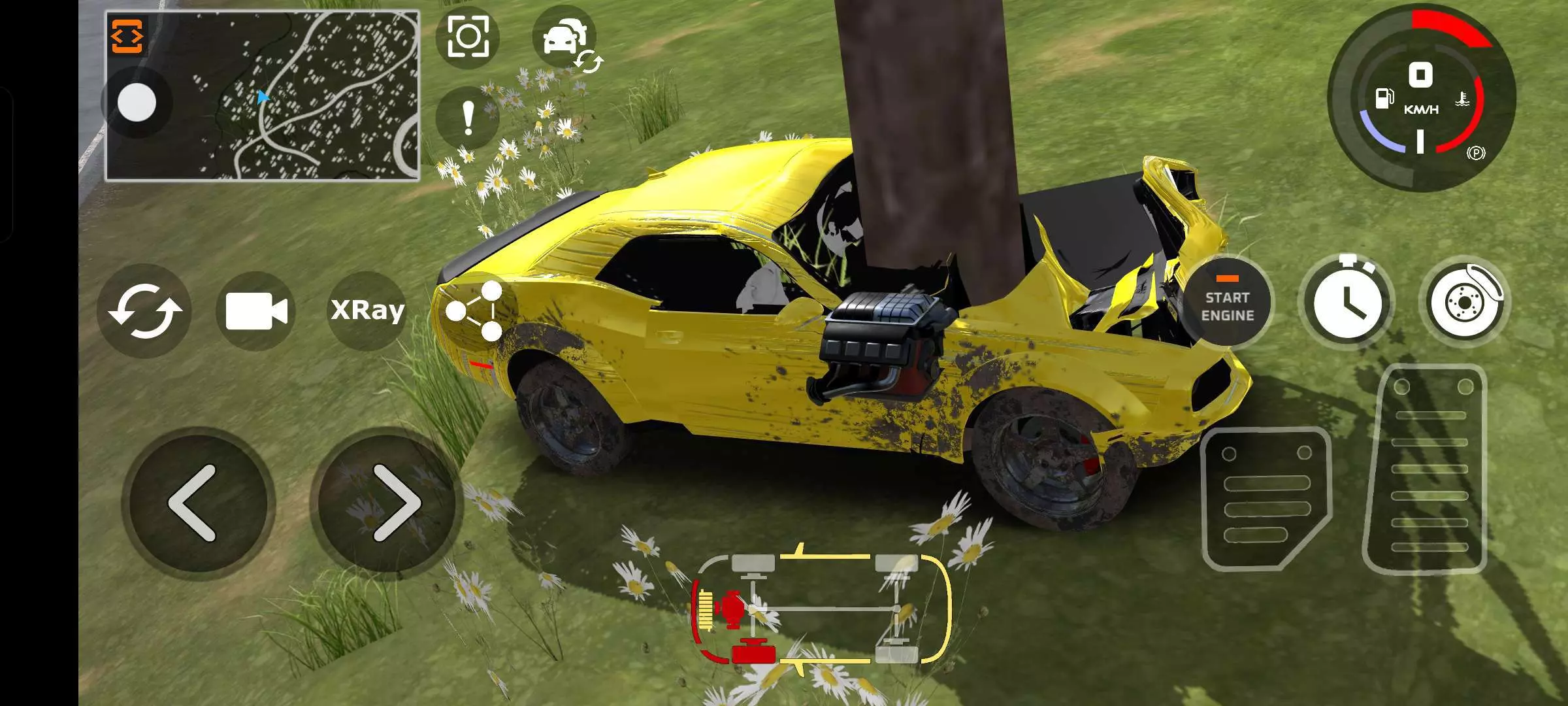 有一天我玩了车祸模拟器,都在我玩一个地图的时候,我全力撞到了这个柱子,没想到,是车卡里面了,还是还是撞出来个大口子?