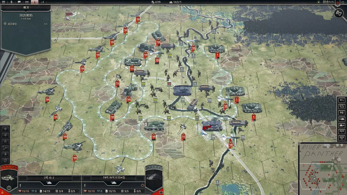《装甲军团2》战斗场景编辑器用户手册 基础操作 新建战斗场景要创建一个新的战斗场景,可使用以下任一方式: 在主菜单中选择 File->New 点击工具栏上的 新建战斗场景 按钮(左数第一个) 使用快捷键 Ctrl+N 载入已有战斗场景要载入一个已有战斗场景,可使用以下任一方式: 在主菜单中选择 File->Open 点击工具栏上的 载入战斗场景 按钮(左数第二个) 使用快捷键 Ctrl+O随后使用标准界面选择你想要载入的战斗场景文件。 保存战斗场景目前所有战斗场景文件存在两种格式: PZ2SCN:编辑器使用的战斗场景文件格式,但该格式不能被游戏直接载入。 MAP:游戏使用的战斗场景文件格式。编辑器可以将战斗场景导出为此格式,但无法重新打开它进行修改。使用 File->Save (As) 、工具栏上的 保存 按钮(左数第三个)或快捷键 Ctrl+S,可将当前战斗场景保存为 PZ2SCN 格式。 使用 File->Export 可将当前战斗场景保存为 MAP 格式。重要提示: 你将无法在今后通过编辑器重新打开并修改此文件。 游玩自定义战斗场景在编辑器中打开战斗场景后,选择 Tools->Play 命令,或点击工具栏上的游玩按钮(左数第四个)。 如果你的键盘带有“Play/Pause”多媒体键,也可以直接按下该按键。 即使你尚未保存该战斗场景,也可以游玩。编辑器会自动写入一个临时的战斗场景文件,并以该文件为基础启动游戏。 导入战斗场景你可以使用 File->Import 命令,将现有的《装甲军团》战斗场景导入编辑器中。导入后的战斗场景可以直接在游戏中启动,也可以进一步编辑并保存为《装甲军团2》的格式。 当前版本的编辑器尚未能完整转换所有《装甲军团》战斗场景的特性(未来版本将进一步改进)。下面的表格总结了这一点。 功能项支持情况说明地图支持地图会旋转90度并且每行裁剪1格,以适配 PzC1 的地图形状到 PzC2。未来我们将提供传统视角模式,使地图在游戏中看起来与 PzC1 保持一致。地形支持PzC2 中的地形种类比 PzC1 更为丰富,因此大多数地形都可以成功转换。但仍存在一些限制: 由于 PzC2 中的断崖是沿六角格边缘设置的,因此目前无法正确转换断崖。 防线会被替换为防御工事六角格。单位支持PzC1 单位会根据 PanzerCorps2/Content/Editor/Data/equipment.pzeqp 文件进行映射转换。若该文件中未找到对应映射,该单位将不会被转换。旗帜支持-特殊六角格部分支持胜利格、次要目标格以及中立格会被转换。撤离格不会被转换,因为《装甲军团2》中尚未引入该机制。战斗场景参数部分支持许多参数已支持,例如日期、回合数、天气、威望、核心栏位和辅助栏位、可用运输工具等,但仍有部分内容尚待完善。单位参数部分支持部分单位参数已支持,例如当前兵力、最大兵力、经验值、工事等级、核心/辅助单位等,但仍有待进一步完善。目前尚不支持增援和部署随机化。图块不支持PzC 的 2D 图块无法应用于 PzC2,因此会被忽略。自定义文本不支持PzC2 目前尚未支持自定义地图文本功能。胜利条件不支持-脚本不支持-AI 设置不支持- 地图绘制及参数设置 随机地图你可以在编辑器中生成一张随机地图,并立即在游戏中游玩,或对其进行编辑并保存为 Panzer Corps 2 格式。 以下指令用于处理随机地图: Tools->Random Map...(快捷键Ctrl+R):打开配置窗口,可在其中设置地图的各项参数。配置完成后点击“OK”生成地图。 Tools->Last Random Map (快捷键R):使用上一次的参数重新生成一张地图。如果你不满意当前地图,可使用该指令快速生成另一张。 随机随机地图 (快捷键Ctrl+Shift+R,无对应菜单项):立即生成一张带有随机参数的地图。该指令适合快速浏览编辑器支持的各种地图类型。只需重复按下该组合键即可查看不同结果。 拖动地图你可以通过以下几种方式拖动地图: 使用地图边缘的滚动条。 按住鼠标中键并拖动地图。 按住空格键的同时按住鼠标左键并拖动地图。 使用方向键或 WASD 键移动地图。 地图缩放你可以通过以下方式放大或缩小地图: 滚动鼠标滚轮上下以分别放大或缩小地图。 在“Zoom”菜单中选择所需的缩放等级。 使用 +/- 键或 PgUp/PgDn 键分别进行放大或缩小操作。 编辑器面板编辑器提供了多种面板,可用于在地图上绘制不同元素。如下表所示:(LMB 表示鼠标左键,RMB 表示鼠标右键) 面板类型操作方式描述地形Edit->TerrainLMB:绘制所选地形 RMB:擦除地形 Shift+LMB:用所选地形填充区域地形特征Edit->Terrain Features(译者没找到这个路径,应同地形路径)除断崖外的所有地形特征: LMB:点击相邻六角格,在它们之间添加选定地形特征 RMB:擦除选定地形特征 Escarpments(断崖): LMB:点击靠近六角格边缘处,在该边缘添加断崖(点击的格子位于断崖下方) RMB:点击边缘以移除断崖 提示:通过地形面板绘制的防御工事为单格结构,无法形成防线。若要构建连贯的防线,请使用“Fortification(防御工事)”方向性特征工具绘制。这样所有连线格会自动设置为“防御工事”地形,无需单独设定。旗帜Edit->FlagsLMB:绘制所选旗帜 RMB:擦除旗帜 提示:在《装甲军团2》中,同一阵营可由多个玩家共用,因此每面旗帜会显示带有玩家颜色的边框。特殊六角格Edit->Special HexesLMB:绘制所选特殊六角格 RMB:擦除所选特殊六角格(该格的其他特殊属性不会改变)单位Edit->UnitsLMB:绘制所选单位或选择光标下单位 RMB:移除单位 Shift+LMB:打开单位属性窗口部署区Edit->Deployment ZonesLMB:绘制所选部署区 RMB:移