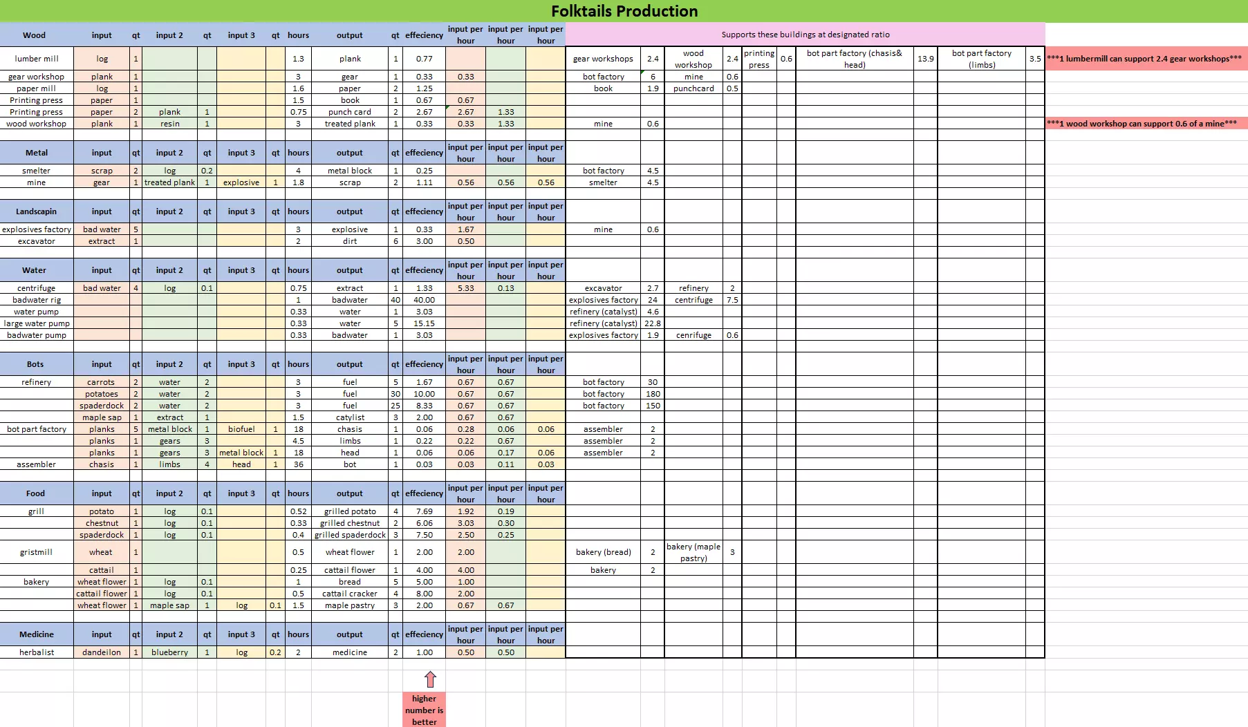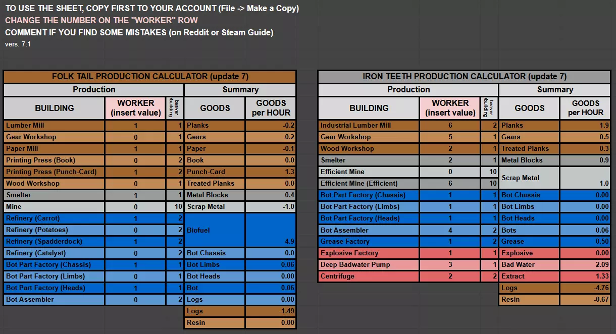 前言 全官方图困难难度双派系建成奇观,分享一点通用的经验。 为了让游戏难度更有挑战性,自己禁用物品和特性:排液处,机械液体泵,炸药,人造泥土,垫材搭高。 使用存水+排液处的组合可以轻松的让任何地图变得毫无游戏体验,所以我不使用这个策略。 地形改造缺乏因势利导的乐趣,我个人不采用这个方式。 用仓库等廉价建筑当垫材搭高/填坑能节省大量爬坡的材料,但会导致游戏地图和提示满屏问号红绿灯,并且应该也不是作者期望的游戏玩法,我个人尝试了一下然后被恶心到了,所以也禁用。 尽量确保16小时工作制。调到18可以让效率最大化,但我觉得还是狸道一点。我偶尔会在极限时刻改成短时间24小时工作制,比如一不小心食物水双崩盘了,不过正常来说只要盯仔细点是可以避免的,这种就当作轻松游戏的代价了。 图省事,所以一般懒得造机器狸。机器狸的效率是高,但肉狸满增益效率一样不低。 两个派系相比而言,神尾简单的跟开了挂一样,各种机制都非常狸谱,只有中后期转机械化的时候有一点痛苦,但影响也不大。铁牙最难受的是前期各种坎,挺不过去就是寄,而且中期会在任意时刻暴毙,千万要随时注意各种数值。 后面会按游戏时期,分派系简单介绍困难难度的挑战。 初期规划 初期指游戏第1-3周期,这时候困难难度还不会有恶水潮,干旱时间最长6天/8天/10天。 第一周期涨水期: 记得把主基地的允许工人数量调到最高,这样有可能第一天就能造好农屋,能快一天收获。个人习惯把主基地工人安排为低优先就业,因为前期一般是缺材料而不是缺工人。 初始建造顺序:农屋,抽水机/水桶,神尾的房子/铁牙的繁殖仓,发明家,木板厂/供能轮,仓储看情况,狸口上来一点再看情况补第二第三个发明家。建议用狸力供能,虽然消耗一个狸口,但困难难度的枯水期比好水期都长,你很难接受水轮有非常长时间的无法工作状态。 农屋造好了先随便划一块地,控一下工人数量让一个海狸先种满地,等种好了再切到收获模式,多拉几个狸收割也行。神尾初期一个农屋俩农民切种地模式也够用了,铁牙因为收获效率没有加成,得俩农屋,安排3狸2收1种,勉强能扛到20狸左右,30-40狸就得3-4农屋了。好消息是铁牙涨到30狸估计得到周期3去了,当然这也是坏消息。 不要浪费木材给铁牙造房子,你浪费不起那么多资源。繁殖仓消耗大量木头和宝贵的食物和水,换来的就是可以省下房子,你再去造房子不是本末倒置吗。 第一周期枯水期: 首先考虑怎么扛过这个枯水期。一般是拿初始的堤坝找到你脸上河流最窄的口子堵满,正常来说都应该能扛住。 如果地图比较不做人,比如螺旋山那个口子宽的离谱,再比如蜿蜒曲线直接不给你下河道的机会,这种你就只能硬扛。硬扛的打法就是多下一个抽水机,多造水桶,把粮食面积也画大,尽量多种抢收,争取硬扛过第一个枯水期,还要考虑尽早造楼梯去吃野果子。如果运气实在不好碰上五天水六天旱直接暴毙,那你可以骂街然后重开刷一个八天水或三天旱的开局。有的图它确实就像没考虑过困难难度怎么活的样子,没必要给自己找不自在。 第一波30科技下林木工,也是看情况画一片就行,可以画大点,最好二百格以上,保你后面造坝的时候资源无忧。地图如果初始木头+可探索木头比较富裕就直接上橡树,30天运气好能赶在第四周期之前收获,初始木头少就先种一批松树快速扩张起来,割完了换橡树。 铁牙如果地图条件好,尽量种红树,能种红树的图初期压力会小很多。 一般一个狸能啃大概50格树,按这个比例造伐木工可以降低发呆时间。当然在你种橡树等长大的时候他们基本上都在发呆,尽量别让他们发呆,把工位暂停,把他们派出去造楼梯,挖外面的木头。 第二周期: 第一周期的狸口基础要打好。神尾建议造房子到30-40狸口上限,铁牙建议造6-8个繁殖仓。发明家建议4个以上,不然很难过后期。 如果你是神尾,这时候工作狸口已经差不多扩到20了,还有10个左右的小狸,稍微注意一下你的食物和饮水管理,适当加一加面积/数量。多余的狸口可以派去外面收集野木头,准备对抗第二和第三个干旱周期,还多余就造搬运站,把出生点的工人点满,把搬运站的优先级调低,这样效率最大化。 如果你是铁牙,正常来说第二周期开始的时候你的狸口是不会变,甚至还有可能减少的,因为才刚生出来,不过会在第二周期的过程中慢慢兑现。这是铁牙比较恶心的时候,因为狸口少,扩张速度受限,不过总体思路不变,也是通过扩张来收集足够的资源,扛第二第三周期的干枯。 水源原理: 宽阔(3格以上)水面大约每天自然蒸发0.08格,换句话说一格0.65高度的水8天蒸发完,你的初始堤坝才0.65高度,根本不够存的。 所以在第二个枯水期来临之前,至少要把科技提升到防洪堤或水闸,最好两个都有,这样才有可能扛过最恶劣的8天枯水期。第一周期的临时堤坝只能利用一个周期,但你可以废物利用掉他们,别舍不得拆,都是资源。 当然也可以考虑采用半活半硬挺策略,但首先你必须知道自己有可能需要硬挺,然后接下来还有第三第四周期,情况只能愈演愈烈,拖延如果不能更好的发展那就没啥意义。 第三周期: 正常发展/扩张节奏不要断,尽量用楼梯/脚手架等办法从外面多捞木头。这时候铁牙差不多30狸口,神尾想多少狸口纯粹看心情,但是太多了也只会把粮食吃贵。 一般这时候应该会进入粮食/水源危机阶