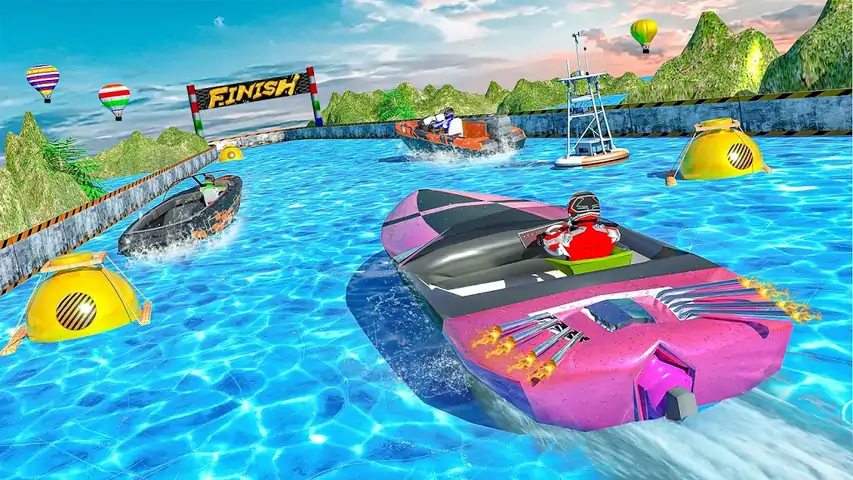 极限船赛车游戏:水冲浪者特技比赛