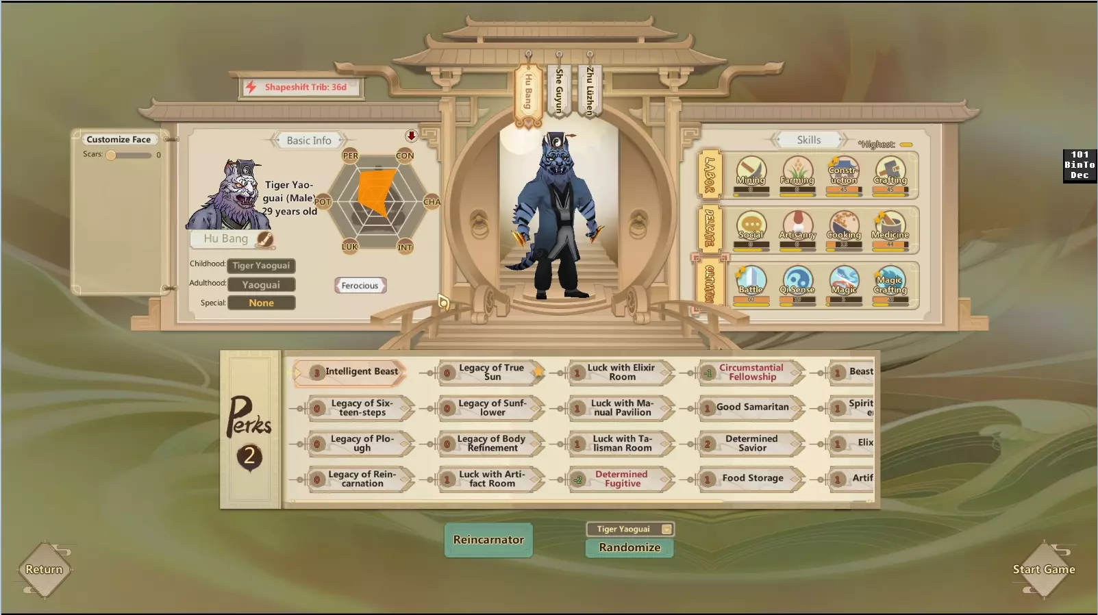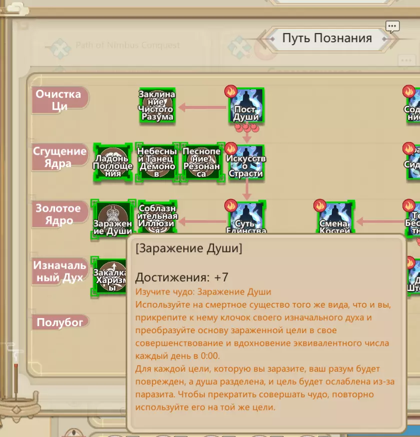 A collection of information I discovered that either wasn't covered in other guides or was particularly difficult to find. Some of this may be obvious, but CTRL+F exists and is your friend. Introduction Okay so at the time I'm making this guide, most of the information available about this game in English is scattered around. The Wiki is being worked on, but is far from complete. And I'm bad at wiki editing, so I'm here instead. I've never made a guide on Steam before, this'll be kind of scatterbrained. I might edit it later to add stuff as I learn more things. I am not an expert on this game and will not be taking questions in the comments, if you ask something about ACS in the comments on this I will be ignoring your question. That being said, PLEASE LET ME KNOW IF I HAVE SOMETHING WRONG. And if you have something to add, feel free to contribute that as well. I've read through literally hundreds of pages of guides and there's literally hundreds for me to still get through. A lot of the problems I had came in the form of not realizing stuff that seemed obvious - so if you had trouble with something you've since found an answer to, this is a good place to mention that. Something of a collection of helpful tips people threw together, huh? I mostly made this because there isn't one elsewhere I can see of and the Discord has a lot of repeat questions, I noticed. This link is to the Discord. CTRL+F there to have a better shot of finding something. Everything here is stuff I didn't realize or couldn't find searching over there. https://discord.gg/uSXsk2T The Bulk Of This Guide I'm not an organized person. The following is a list of (mostly minor) things I didn't know and either couldn't learn despite searching for it or it was a huge pain in the ass to find it, as well as a few things that are general common knowledge but exceedingly important. 1: You've probably been told not to start with a Yaoguai and you probably decided to heed that advice after, at most, the first or second time you made the mistake. The important thing to know about Shapeshifter Tribulations is that you have to manually activate them. Select your Yaoguai, hit the yin-yang symbol on the right and then click the icon that tells you how many days until your next tribulation. I didn't think it looked clickable but it certainly is! You then select a spot to have your fistfight with Heaven. 2: Yaoguai that have successfully survived their Shapeshifter Tribulation will never have to undergo another Shapeshifter Tribulation (but may need to survive a different Tribulation based on how you choose to progress their Cultivation.) You can use a drop-down menu that appears in the bottom left to switch them between their beast, monster, and human forms. There's statistical differences but I'm unsure what specifically they are. This body cultivation resource's Demon Guide section states that the beast form remolds body parts faster: https://docs.google.com/spreadsheets/d/1QfVZ9tvaUFXORqIEG3zOP2O-KYcPlpd0I7aR0Y0SzJI/edit#gid=1175597012 I couldn't tell you what else applies. 3: Spirit Soul Gems are a ♥♥♥♥♥♥♥♥♥♥ to farm so buy them any chance you get because you're unlikely to have access to them when you need them most. There is no consistent farming method to get them, unlike Anguish Soul Gems (Hell Gates). 4: Don't make a bunch of storage, you'll get a miniature universe relatively early on. 5: In order to construct the miniature universe, all you need is a cultivator at or above Golden Core. Examine the orb, then examine the scroll, it's in the building category "Wonders". It requires some rare-ish resources but it's not terrible. (Fire and Ice Essence, Holy Stone Blocks, etc.) The small offshoot pillars of the mini-universe are not necessary - all they do for you is let you take items from the universe out at the location of the pillar instead of the universe, but most things your disciples will have teleported to them. 6: In light of this and other reasons, there's huge advantages to having exactly one inner disciple who blitzes through and gets a garbage golden core. Primordial Spirit (the tier after Golden Core) takes a long time to reach no matter what you do, and it's worth rushing to so you can unlock the spells that boost allies' stats by a percentage based on how low the stats are at the time you cast the spells (there's one for Perception, Constitution, Charisma and Intelligence. None for Luck or Potential that I'm aware of.) 7: Once you hit the second tier of sect, it's advantageous to make multiple "throwaway" inners (3 or so) who you just send on looping adventures to places with resources you find valuable that aren't terribly rare. So not crimson fruit, but stuff like ores. Having 300 igneocopper or ice ores at all times is a good policy - it means you can donate 200 to factions when they need them for World quests. Those quests are a decent way to get connection/favor. 8: That said, those quests aren't nearly as valuable for favor as camping at a given faction's headquarters and inviting a bunch of Qi Shaping/Core Shaping disciples over. There's tons of benefits to this - if they have nice rooms, nice food, access to a place to meditate and some recreation options (and it ISN'T WINTER), you'll likely get anywhere from 17 to 50 favor per. This is good. Run a fancy hotel for them. You can try to recruit their people out from under them, too! 9: It's better to keep the numbers of Physical Cultivators you train down - they require more micromanaging than Xiandao, and while your mileage may vary I learned having 3 is a pain in the ass to coordinate. 1 is fine, 2 if you really must. Once you have one mostly trained up, of course, it's no big deal to add more. 10: 9 is even more true of Shendao, with a caveat. Shendao are extremely annoying to level once they have a Palace, but also getting there takes a really long time. However, if you slap every possible talisman that increases Mental State, if made o
