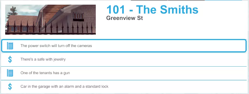5. 快速搜刮一楼和二楼的所有小件物品!你需要在晚上11点前离开大楼!(注意:当你在房子里时,会有一名守卫在一楼,请注意!)