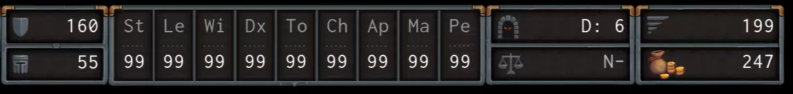*注:力量(St)、敏捷(Le)、意志(Wi)、灵巧(De)、体质(To)、魅力(Ch)、感知(Ap)、魔法(Ma)、幸运(Pe)