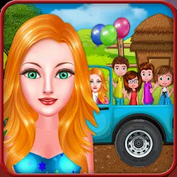 孩子们去村庄农场