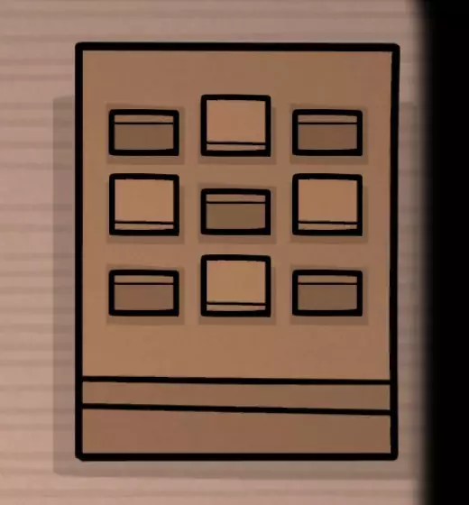 查看挂在墙上的乌鸦相框并点击它,然后照镜子