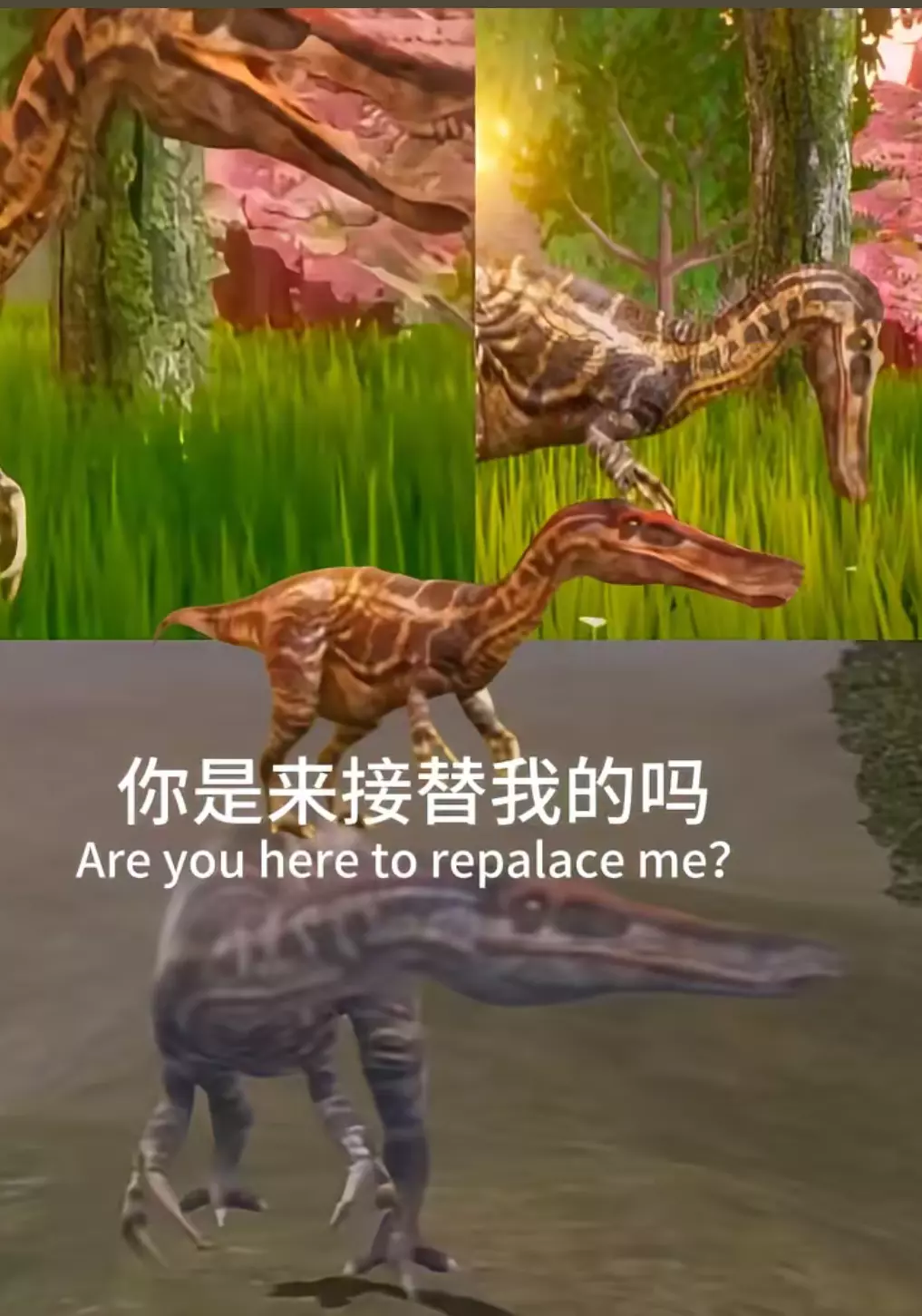 昨天我玩的南巨。当时我拉了我的好友,我陪他养龙呢。他刚出生就跑来了一只小鸡,那个小鸡很小,本来我以为他是新手,所以就没打他。(毕竟谁也不想养龙)但他一直在骚扰我们。最后小鸡磨着磨着那个小南巨真的掉血了。(中途我劝了好多。让他别打了。但他还在坚持)我一个技能给小鸡震飞了,本来没死的,结果有流血,而且他只剩一点血了所以死了,接着又来了一只厚鼻,他只是站在远处,我还以为他是好的。然后呢,不久之后又来了一只鹦鹉嘴龙。追着一只恐爪跑。然后恐爪躲在我身子底下回血。那个鹦鹉嘴就一直在打恐爪还顺带着打我。我不敢用技能。因为我一用技能恐爪肯定也会死。结果我硬是被鹦鹉磨掉了1/6的血。厚鼻看我起身了。直接上来就是一个骨折。(直接就上骨折了,还是三层,什么概念?)然后呢,我追着厚鼻咬了一会。突然出现一只好像是钻石皮的独角仙。然后开始偷我。然后我就顾不过来。因为我打独角仙,厚鼻就打我。我打厚鼻,独角仙就打我。最后我被他们打死了。疑似生态团伙作案😱😱😱太吓人了。