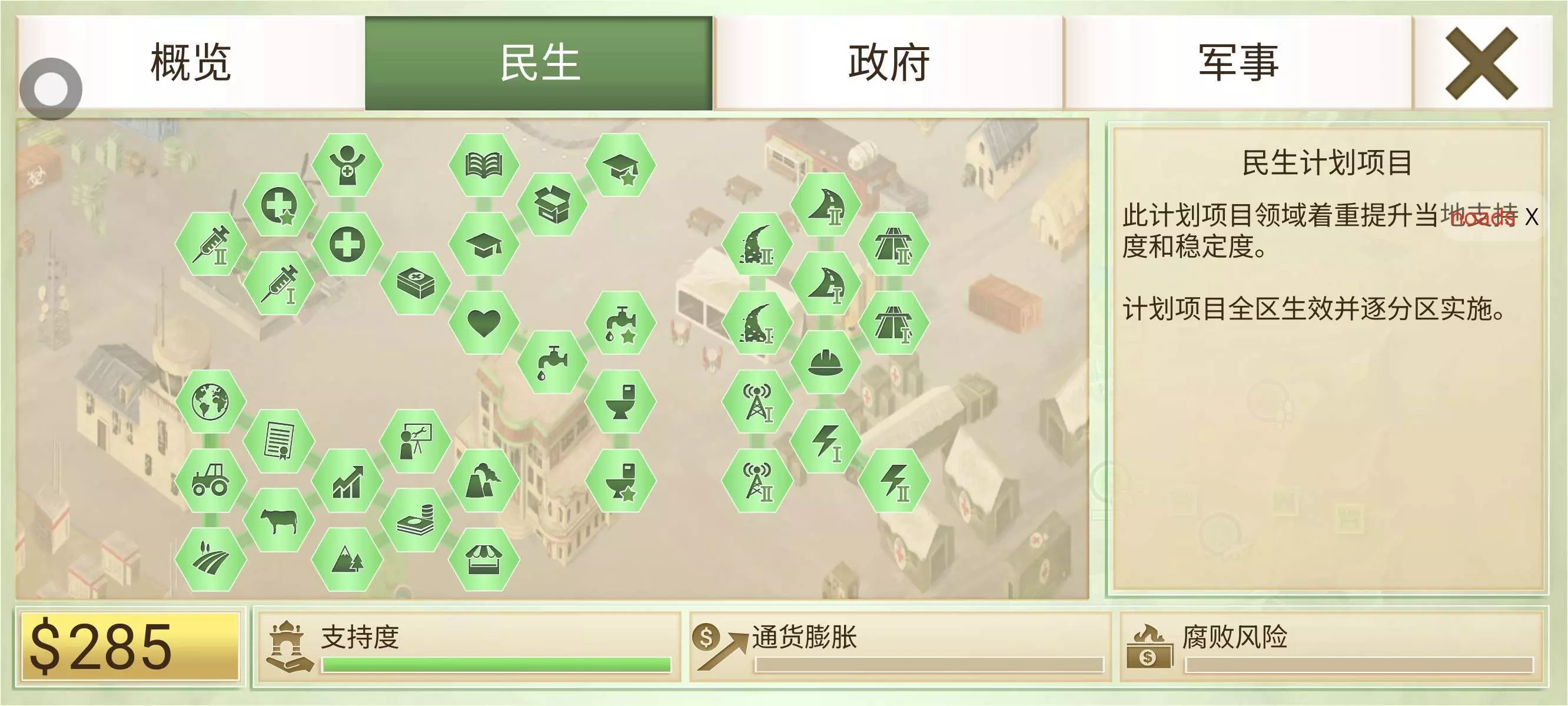 打困难平原的时候明明花了好多钱点民生了,叛军也有在一直剿,为什么声望一直在掉啊,一个月能掉好几点声望