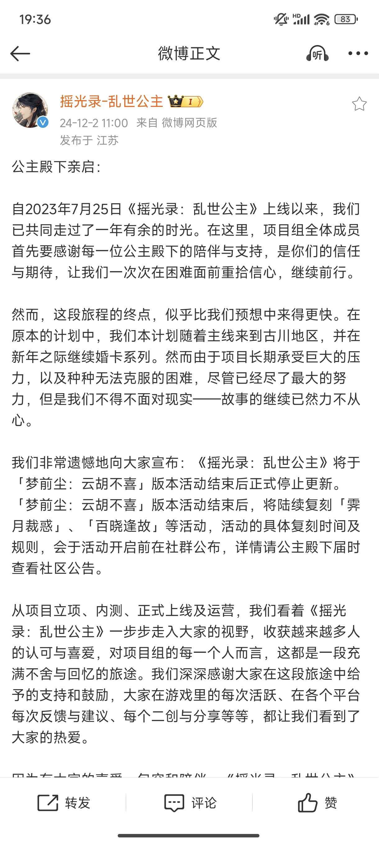 摇光录要停更了……💔😭