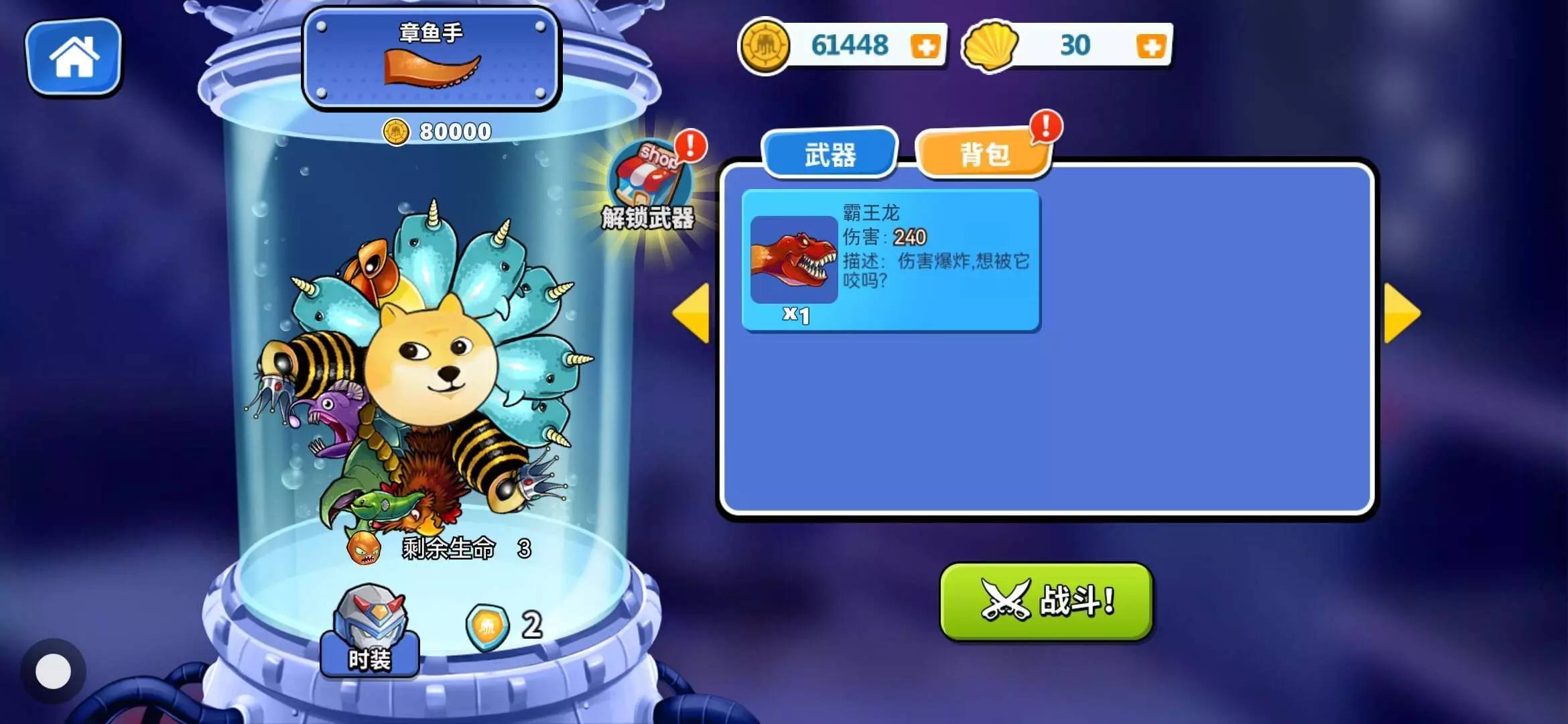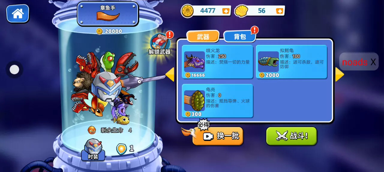 只是因为我天天开始广告,赚的钱比较多,买了8个爪子。之后还有一些遗产,结果拿了一堆霸王龙头部。然后单数boss都快没了,真的可怜,这带出boss了。直接给他咬死了