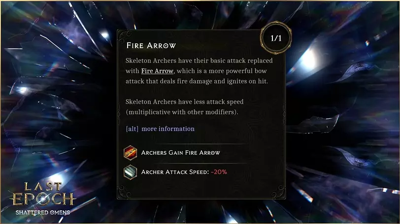 Bug Fixes Passives & Skills Tempest Maw: Fixed an issue preventing summoned Storm Sprites from exploding on death. Fury Leap: Fixed an issue where, when Pack Leader was allocated, would cause a Summoned Sabertooth to instead leap to an enemy before teleporting back to the player. Dark Quiver: Fixed an issue where the Until Dawn node would not trigger when using a skill that is not originally a Bow attack, but had the Bow tag added on via another source. Elemental Nova: Fixed an issue where Crest of Unity would not apply its Elemental Penetration unless the Infernal Prism node was allocated. Summon Skeletal Mage: Mage summon variations should no longer cease after changing zones online. Before this change, after zoning, mage types would be fixed and required a relog in certain skill tree configurations. After zoning, players should be able to summon every type of Skeletal Mage they have enabled. Runebolt: Fixed an issue where Runebolt would only provide Rah for Runic Invocation when the Immutable Order node was allocated, and Runebolt had not yet been cast. Entangling Roots: Fixed an issue where Entangling Roots would not display an unilluminated Cold icon in the skills panel when the Winternid Thorns node was not allocated. Serpent Strike: Fixed an issue where Serpent Strike would not display an unilluminated Cold icon in the skills panel when the Frostwyrm's Fury node was not allocated. Summon Spriggan: Fixed an issue where Summon Spriggan would not display an unilluminated Cold icon in the skills panel when the Branches of Winter node was not allocated. Summon Raptor: Fixed an issue where allocating nodes in the Summon Raptor tree while having multiple raptors from the Naal's Tooth item would cause some raptors to be despawned. Runemaster Passive Tree: Fixed a bug where Jagged Veil's threshold bonus was not being applied. Dual Wielding: Fixed an issue where the player would be considered as Dual Wielding if they had a valid weapon equipped in the offhand while the main hand was empty. Spellblade Passive Tree: Fixed an issue where Volka's Razor node would not trigger for skills that cost exactly 10 mana. Bone Curse: Fixed a visual issue with Bone Curse. Assemble Abomination: Fixed a visual issue with Abomination's tail slam attack. Devouring Orb: Fixed an issue where the node Void Adept would not double the effect at 90 Vitality (instead requiring 91 or above). Volatile Reversal: Fixed an issue with the fire conversion of Volatile Reversal where a fire visual effect would linger after the skill was complete. Summon Skeleton: Fixed an issue where Skeletal Archer had their arrow released at what was visually the start of them drawing the bowstring. Dive Bomb: Fixed an issue that would sometimes cause the Falcon, after using Dive Bomb, to briefly appear at its previous position before teleporting to the location of the Dive Bomb. Frenzy Totem: Fixed an issue where Maim would not cause your Sabertooth to double cast Flurry Swipes while Frenzy Totem was active. Dread Shade: Fixed an issue where having the Egoism node allocated would not allow allocation of the Vile Ghast node despite their connection in the tree. Forgemaster Passive Tree: Fixed an issue where an equipped shield would visibly fly around a Sentinel, unallocating Forgemaster's Might. Summoned Death Knights: Fixed a visual issue where their capes would clip into their bodies. Avalanche: Fixed an issue where Avalanche boulders would visually display underneath blood decals. Flay: Fixed an issue causing Flay to not display damage estimates when hovered. Lightning Blast: Fixed an issue where Cloud Answer's chance to apply spark charge on hit did not apply to Lightning Blast's subskills, such as Spark Nova Lightning Blast: Fixed an issue where Mortal Capacitor was not affecting Lightning Blast's tooltip DPS Items Carrion of Creation: Fixed an issue where Carrion of Creation's primordial blood splatters occurred at the wrong position. Tyrant's Skull: Fixed an issue where the Tyrant minions icon did not display an HP bar. Hydra Arc: Fixed some visual issues that would lead to clipping and being positioned incorrectly in a Rogue's hands. Carcinization of Momentum: Fixed an issue where the Summoned Crab icon was displaying as the Evade icon. Campaign Fixed an issue with the fade to black before scene transition ending before the loading screen would appear in some chapter 10 scenes. Fixed an issue where Apophis could sometimes face the wrong direction when speaking to the player. Fixed an issue with the door below the waypoint in Immortal Summit not breaking when entering via portal. Fixed decals appearing on the Observer NPC. Fixed an issue where transitioning while a narrative event was taking place could result in a never resolved loading screen in Offline mode. Fixed various objects in chapter 10 being able to be walked through. Fixed an issue where the time rift at the start of chapter 4 would not properly play the time travel visual effect. Fixed some visual issues with props in The Fungal Tunnels. Fixed a situation where some NPCs dialogue icons in Chapter 7 did not update properly when returning to their scenes. Fixed Dragon Eggs not having an outline. Fixed an issue where some stairs in The Temple of Heorot were impassable. Fixed an issue in the Halls of Preservation where the bridge that is lowered would not be visually lowered for late joining party members. Fixed an issue where the Farsight Turtle in the Silent Coast was higher in the air than intended. Fixed an issue in The Garden where waves would sometimes appear above the ground. Fixed the minimap not displaying correctly in Liath's Tower. Fixed an issue where you could walk into the ground visually in the Sky Chains. The camera will animate more smoothly when entering the Draal Hive for the first time in online mode. Monolith Fixed issues with invisible walls in the following monolith echoes: Serene Isles, Nightbloom Forest, The Sky Garden, & Tidal Sands. Fixed an issue