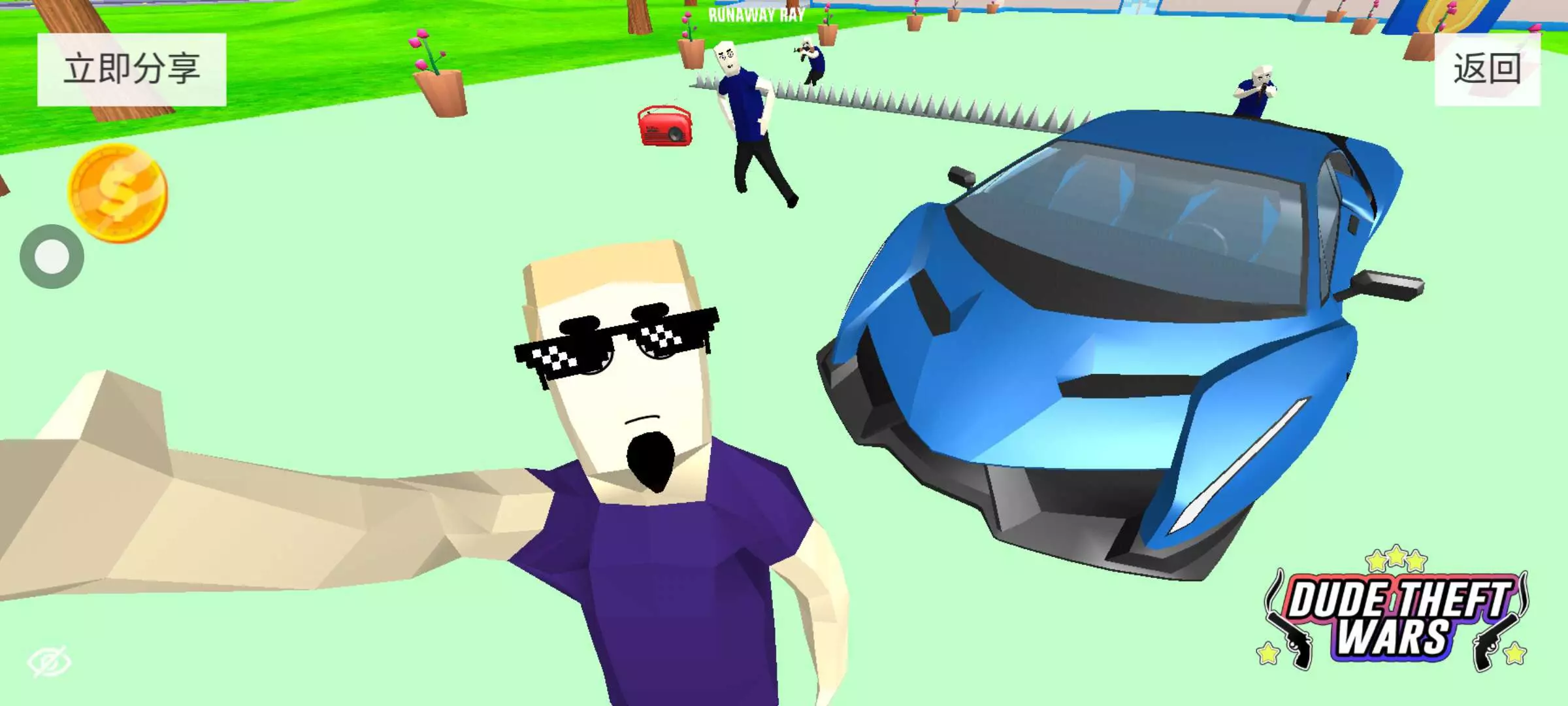先召唤一大群僵尸再用车一撞就得到了很多的钱,不过钱都在地上得自己剪,而且用多了手机容易卡成OPPO A5所以建议每创两下,远离一点,把尸体刷掉