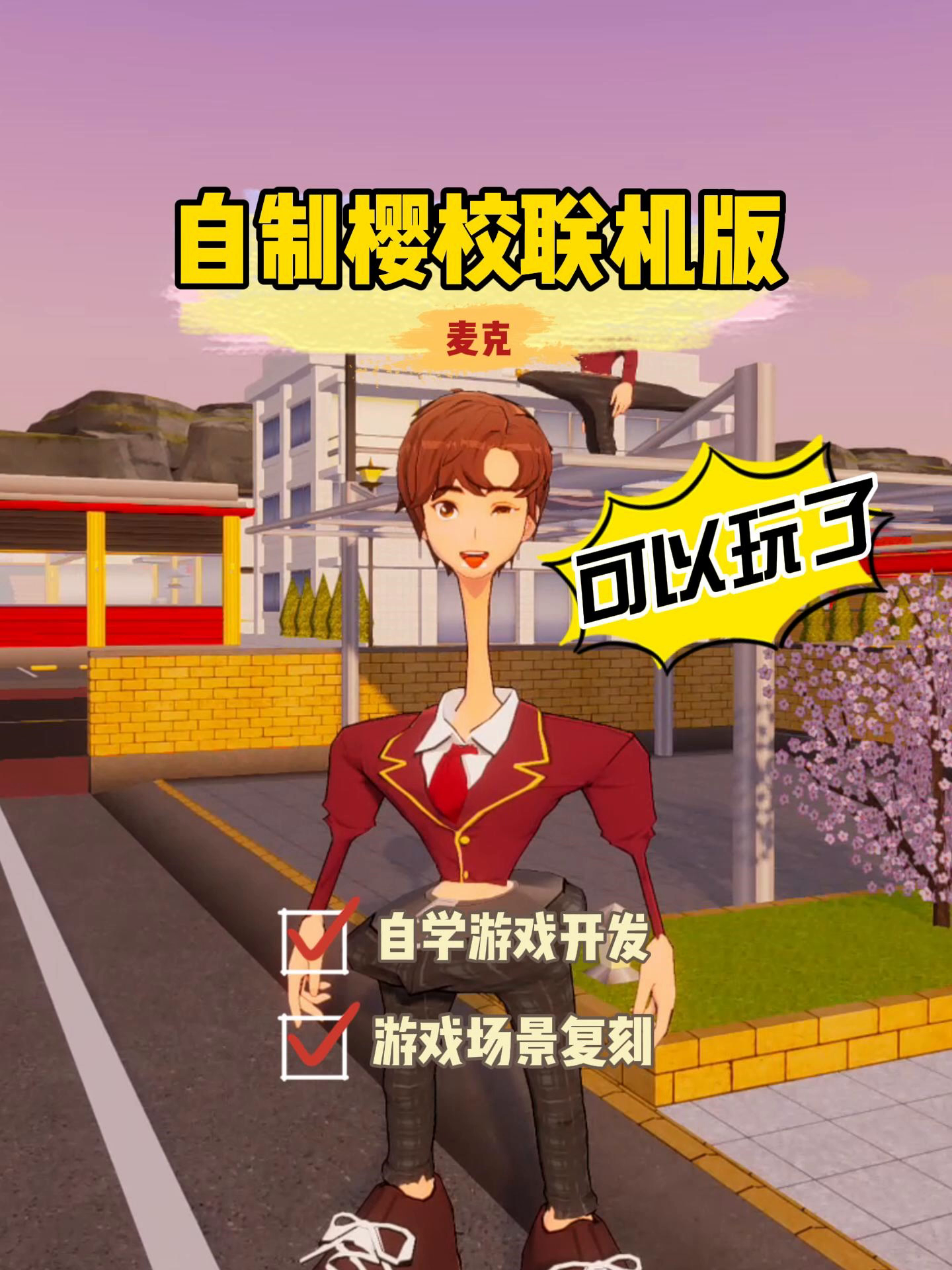 我是麦克,欢迎大家来玩我做的《樱校联机版》呀,试玩版本游戏内容比较少,大家有建议都可以提出来哦~