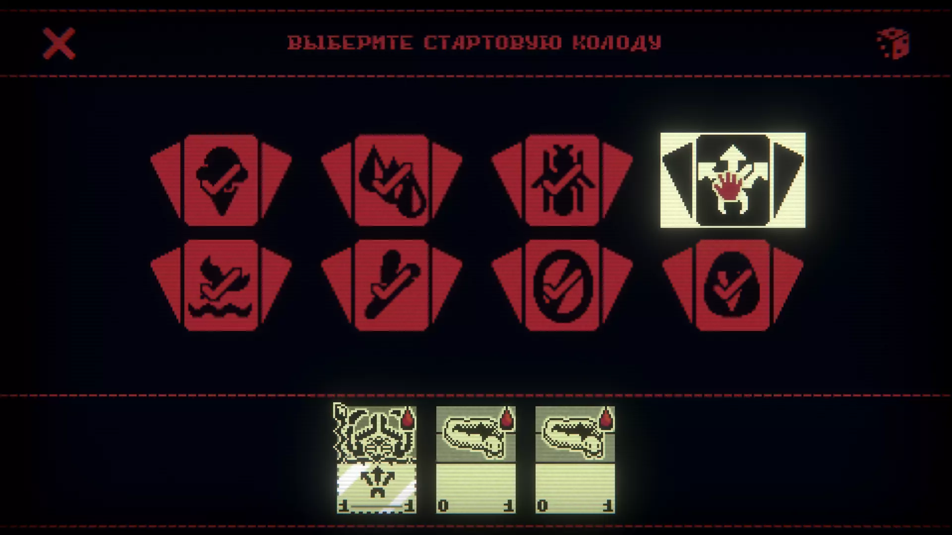 Привык проходить игры на все достижения? О, мой друг, я такой же! Но с этим чудесным достижением всё не так просто, как может показаться на первый взгляд... Инструкция Всё, что нам потребуется - выход в меню. 1. Залог успеха - хороший старт. Стараемся выбить нужные карты у лавочницы, успешно прогреться у костра, получить хорошие предметы. *Первый раз, когда нам пригождается выход в меню - самое начало. Не дойдя до первого автосохранения и выйдя из игры, можно таким образом сменить карту и выбрать наиболее подходящую. 2. Когда вы уверены в том, что готовы идти с этой колодой до конца, используем выход в меню при любой неудаче: - Выпала неподходящая карта в выборе по стоимости или по семейству - Неудачные фигурки у резщицы (выбираем альтернативный маршрут) - Проиграли в битве (лучше выходить чуть заранее) *Не влияет на выбор у золотоискателя, так как он заранее предопределён вне зависимости от выбора карты 3. Если вы играете от колоды бога богомолов и/или у вас есть кольцевой червь, прогреваем на костре именно его. Если видим, что он улучшается второй раз, выходим в меню (делаем это как можно быстрее), и берём уже нужную для улучшения карту. Всё дело в том, что при потере карты на костре автосохранение происходит сразу, в отличие от второго улучшения. *Автосохранения, помимо этого случая, сразу проходят в большинстве выборов при их совершении (взяли карту, часть тотема, последний предмет и т.д.). Поэтому эта механика позволяет увидеть заготовленное игрой, но не изменить выбор. 4. В битвах автосохранения происходят по их завершению. Поэтому если понимаем, что зашли в "тупиковую ветвь", то по возможности стараемся выбрать другую битву на карте. В противном случае выкладываемся по максимуму, но учитываем, что Леший ставит свои карты обращая внимание на расположение наших карт на поле. 5. Спам медведей проходится многими разнообразными комбинациями, но суть у всех такая: - Или выбиваем краску, и справляемся уроном летающих - Или пробиваем уроном одного медведя (можно использовать нож охотника или ножницы) и наносим в эту же клетку 5 единиц урона (например, с помощью знака богомола или бога богомолов, но в редких ситуациях может подойти и двойной удар ужасного волка, если у него 6 и более единиц урона) *Я проходил это бессмертным (символ таракана) богом богомолов, стараясь защищать остальные клетки любыми НЕ амфибиями. 6. Финальный босс не слишком сложный. Под атаки пушек можно подставить его же кротов. Но вам всё равно понадобится много урона, чтобы пробить хотя бы одного крота (8 здоровья) *Если используете песочные часы, а пушки уже будут нацелены на клетки, то они всё равно выстрелят. Когда появится корабль, не паникуем. Достаточно, чтобы одна ваша карта находилась на поле, и тогда урон пройдёт не по вам, а по карте. Можем жертвовать скелетов, чтобы разместить свои карты, и обязательно делаем это, не допуская 4 скелетов на нашей стороне в конце хода, так как они рассыпятся и урон пройдёт по нам. Оправдание (*Громким шёпотом:* ДАЛЕЕ ИДЁТ НЕОБЯЗАТЕЛЬНАЯ ДЛЯ ПРОЧТЕНИЯ ЧАСТЬ; ЕСЛИ ТЫ ТУТ ТОЛЬКО РАДИ ГАЙДА, ОН УЖЕ ЗАКОНЧИЛСЯ) Я лично считаю, что данный способ нечестный. Но вот почему проходить Бурю черепов нечестным способом – вполне оправданно: 1. Inscryption представляет собой "игру в игре", поэтому когда мы обманываем эту "игру в игре", то сама "игра" остаëтся не обманутой. 2. Ну а т