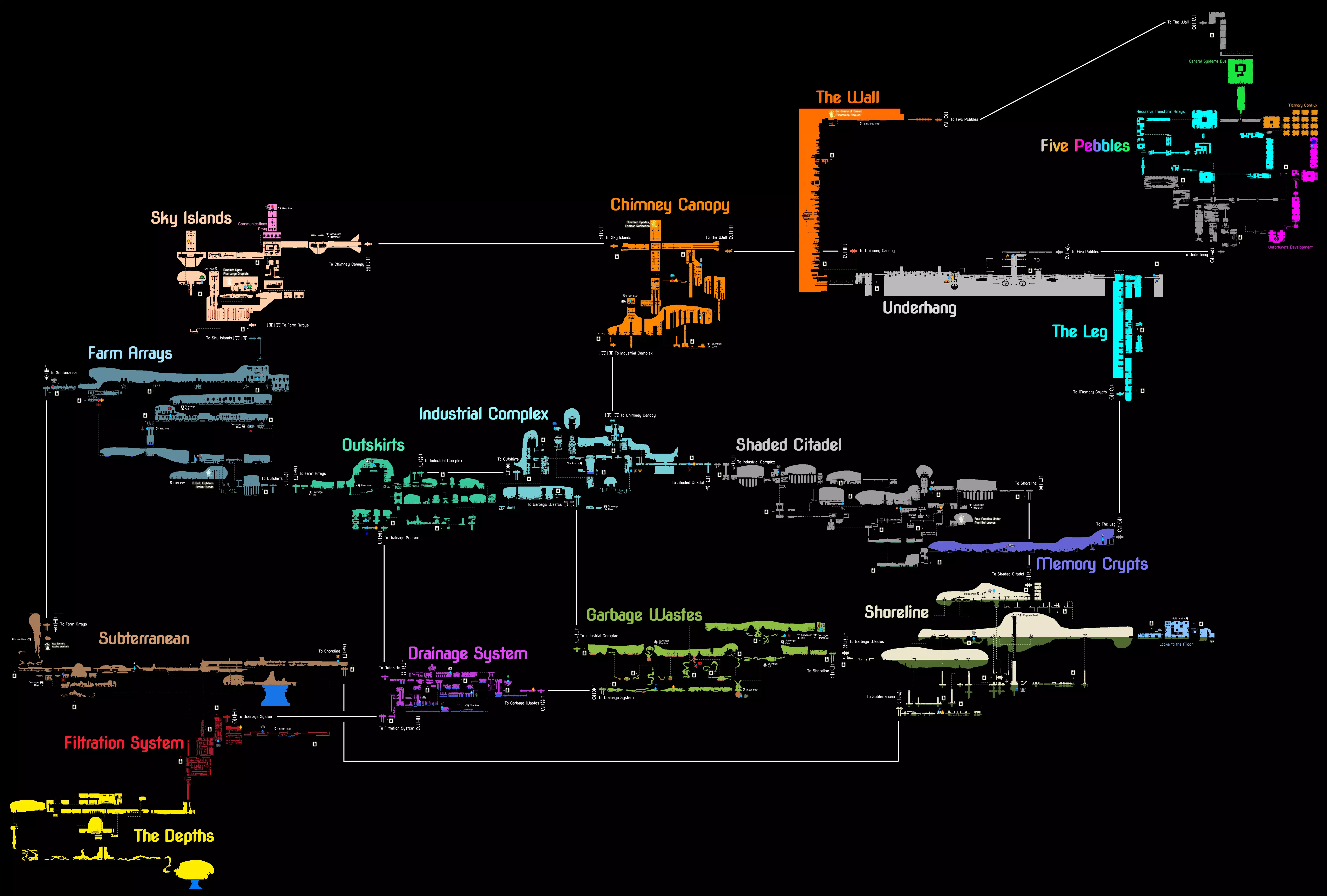 Rain World is a deeply difficult game, both in terms of mechanic and in how willing it is to make itself explained. Here's a few tips to make your first hours less teeth gnashingly hard, while preserving some of its mystery. This guide has been written with the Survivor in mind. Introduction Rain World is a "hands-off" game in every sense. It does little to guide you in how any of its convoluted systems work. It rarely guideposts any reasonably path through this world, the Yellow Guide be damned. Enemy behaviour is procedural, a difficulty that is not crafted by any developer, but by the ecosystem it inhabits. This is a game that is maddeningly alive, which means it's chaotic and unfair. You can not beat this chaos, but you can learn to temper it with knowledge and skill. But those two things should only come as hard-fought victories, and not through some wiki page. Dig deep enough - and trust me, it requires a lot of digging - you'll find a mystery worth the hours, and an incredibly immersive world. These tips should be enough to help you without any cheating. First, and most importantly, where do I go? Your feast is to the East, which lies a little past the pasture... So, you have a lot of places you could go. Feel free to explore them! Finding your own path, discovering new sights -- that's what this game is all about. However, some regions are much more difficult than others. If you find yourself struggling far too much with an area, there really is no shame in turning back. Trying to push through is most likely only going to lead you into even more difficult areas. While this kind of trial by fire is memorable, it's unlikely to be for everyone's taste. Therefore, let's keep it simple. Head to the east. Do not go too far up, nor too far down. How you judge "too far," I leave up to your own budding, slugly intuition. So head East for now. That's where the little yellow guy seems to be pointing, after all! Controls These controls are going to be, well, slug-ish for the first 10 hours. The procedurally animated Slugcat is equal turns nimble and awkward. Mastery over this is going to come with time, but for starters... Movement You don't need to hold down the down button to crouch. Just tap up and down to switch stances. This is important because... Long jumping is a crucial skill. Long jumping is done by crouching and holding in the jump button, allowing you to jump over longer gaps. Not an exact science, but you can grapple onto ledges by holding up, the direction of the ledge, and pressing the jump key. Quite common in conjunction with long jumps. While crawling through tunnels, try jumping. Depending on the direction you're traveling in, you'll get different results. Up to grab, down to drop. Applies to several things. There's a few more moves that might come to some esoteric help - a slide and a backflip. See if you can figure these out! Item Management Hold down while pressing the grab button to gently set an item down. Double tap the grab button to swap items between Slugcat's paws. The right paw, left from a player perspective, will always throw the item first. Hold down the grab button while you're holding an item and something unexpected will happen. Navigation It can be difficult to tell the difference between an instant-death fall and a new location. Generally if a new area extends past the screen, it'll be shown by a pole going off screen towards it. Otherwise, if you look closely, an instant-death fall can be recognized by a subtle, pulsating shadow on the edge of the screen. The Cycles Hibernation Chambers So you should know the basics -- Eat 4 food to hibernate, any extra will be saved for the next cycle. Each hibernation gives karma, each death takes it, and you need a certain amount to pass into the next area. But not all hibernation chambers are your friend. Hibernation chambers can end up being in unfairly difficult areas. You may want to examine your surroundings and makes sure it's a good spot to hibernate in (is there food reasonably obtainable nearby? Is it easy to get out of the area with perhaps multiple paths? Do lots of enemies seem to block my path?). There are a few spot where you'll end up trapped in a room full of enemies with only 1 way out -- it's better to die and lose karma than it is to hibernate and become stuck here. If you already are stuck, then forget about your karma and just start experimenting with your obsticles and items and coming up with ways to progress. Enemies can be fought and outsmarted, if you learn enough about them. Karma gates The hibernation chamber is somewhat explained to you, but the gates aren't at all -- this system can be brutal, so I'll explain the best I can without spoiling. Most areas have multiple gates, requiring a set amount of karma to pass through. A gate with a higher karma requirement will likely take you to a more difficult area -- but a really low one might be taking you backwards, so check before you hibernate on the other side. Before you pass through a karma gate, make sure you've eaten at least enough food to hibernate on the other side, to avoid being sent back and ending up with too little karma to proceed. If you do end up losing the needed karma and get stuck on the other side, don't be afriad to backtrack to find food. Plants will also regrow after a few deaths, and you can hoard extra of them in your hibernation chamber. Items & Food Items Spears are always useful. Try and have one on you as often as you can. They're for more than just killing... Rocks and debris on the ground are useful for stunning and distracting enemies. See a shiny thing with a white speck on it? That's a Pearl. They're valuable - but to who? Maybe you can get something in return. Coloured pearls are precious, but few know their true value. Items stored in shelters, if they aren't perishable, will remain indefinitely. Food Bats and fruits are going to be your stock at the start, but don't expect to see them everywhere. Bats won't