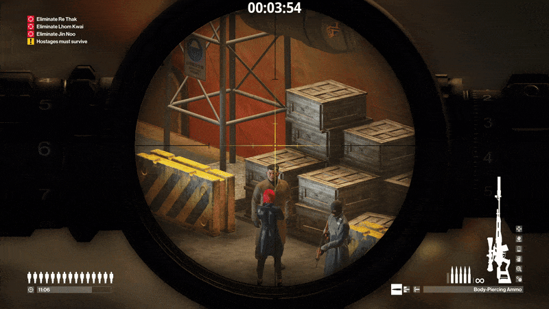 在阅读本指南后,我建议你阅读我关于《杀手》系列中狙击步枪使用方法的指南,该指南也与本指南相关。 HitRuns Wiki包含有关《杀手》游戏机制的最佳指南,如果你想进一步提升自己的《杀手》技能,一定要去看看。 一枪子弹干扰:这是指你在NPC附近开一枪,他们就会去调查你开枪的确切位置。