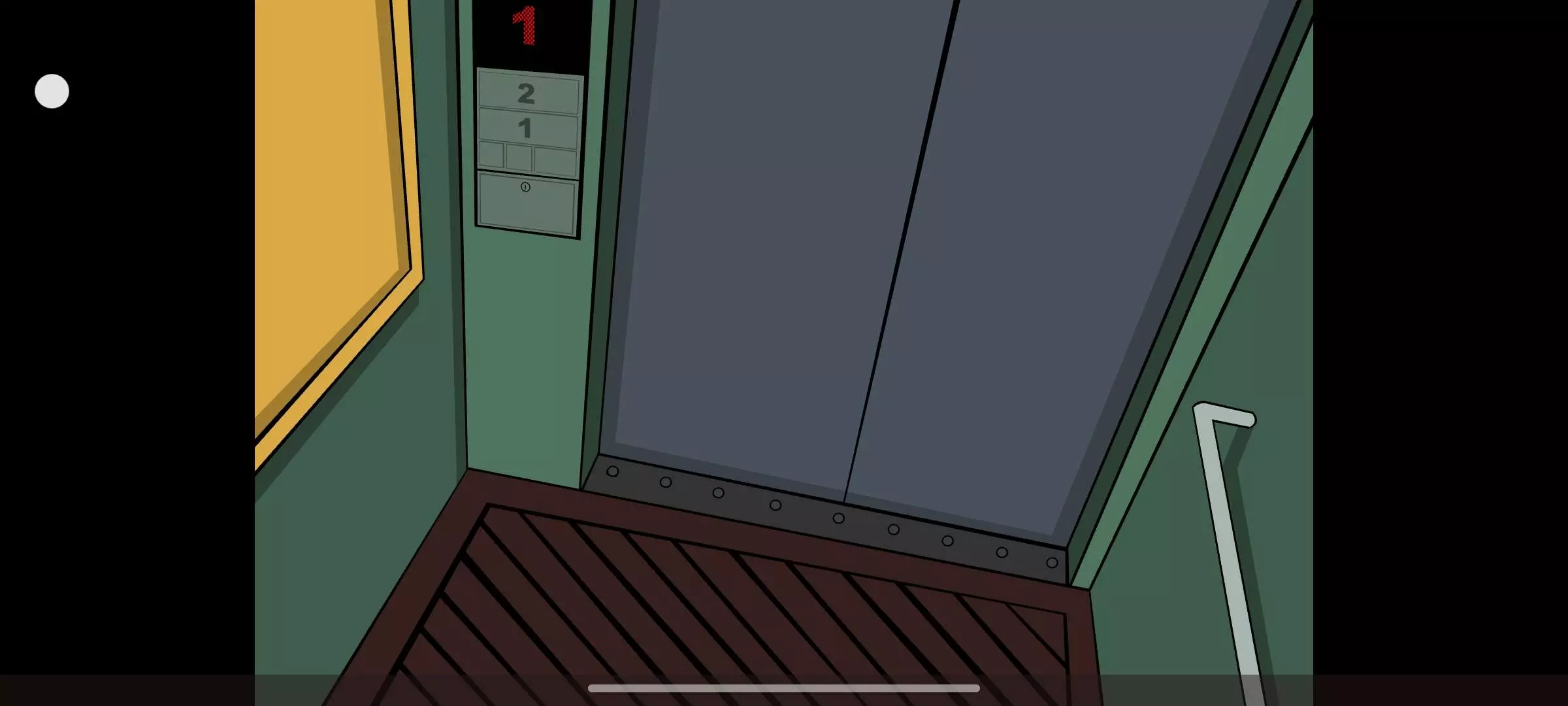 23.点右下箭头,看剧情动画(光学实验室对面的房门被毁掉),点右侧箭头,点右边灰色门进入电梯,点门左侧的电梯按钮,点数字1按钮,回到1楼,点右下的门,回到研究所门前。