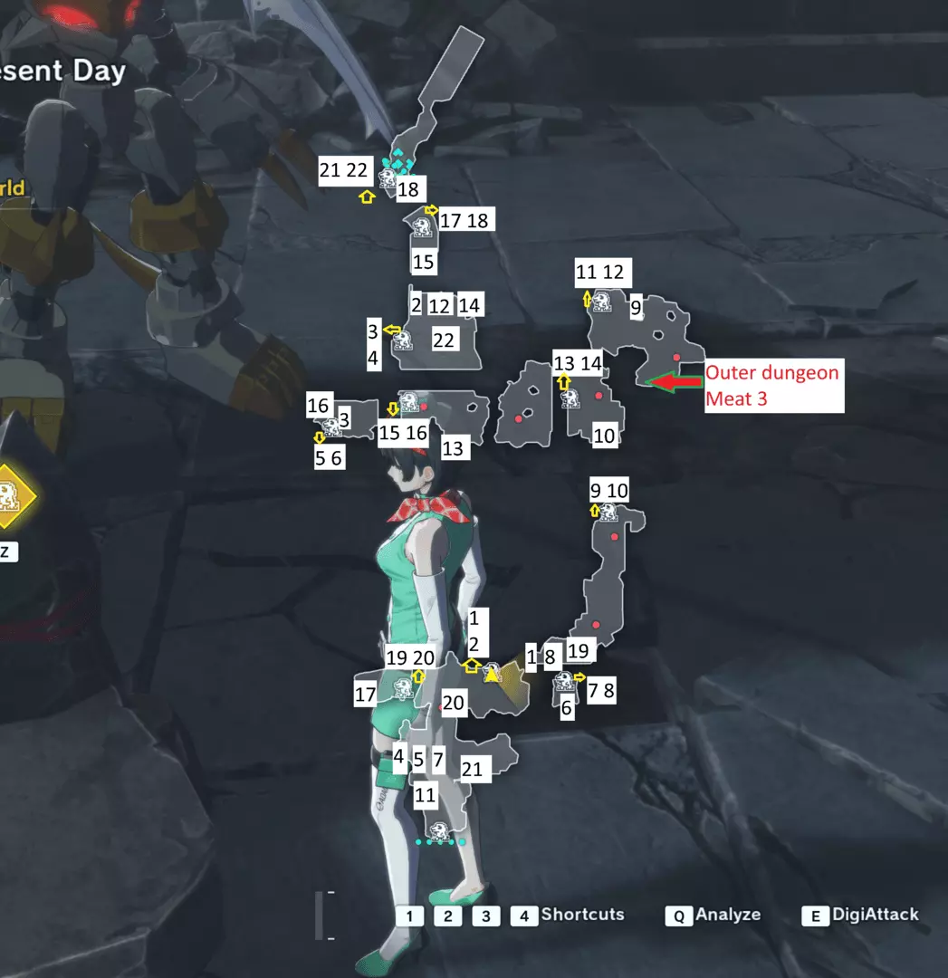当你到达冥界王座时,会遇到游戏中最棘手的部分:一只蝌蚪兽会根据你的回答将你传送到地图各处。回答错误会让你回到起点,当蝌蚪兽喋喋不休地谈论数码甲虫时,就说明你选错了。