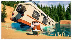 你实际上可以在游戏开始时直接跳过河流区域的末尾。 方法如下: 1. 在岩石坠落前向左驶离道路,找到大河并开到悬崖边缘附近,用绞盘将车辆放下,直到无法再放为止,然后解开绞盘。 2. 将前绞盘连接到河对岸的树上,将房车拉过河。 3. 现在只需像正常情况一样驶过剩余路段即可。