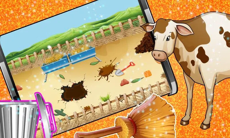 孩子们的农场洗和清理