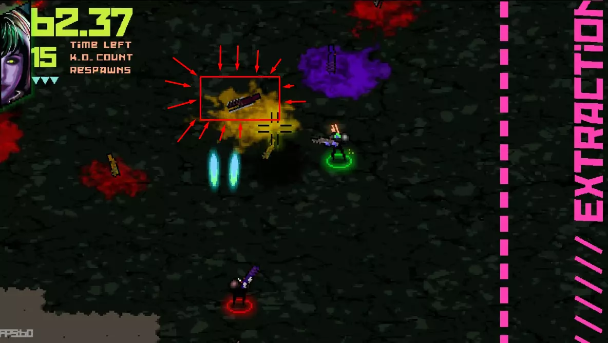 紫色枪发射1发较大子弹。