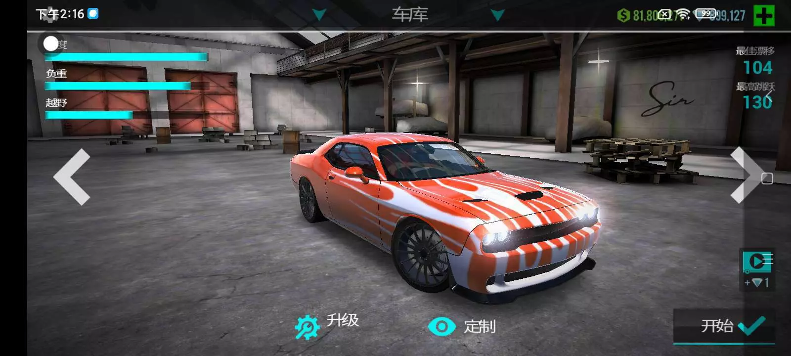 这款游戏主要的感觉就是它的无限金币。就是手感不好,嗯,游戏里面就经常往后退的那个沙呃车的搞不到,所以撞到其他地方就根本往后退不了就只能退出重进。