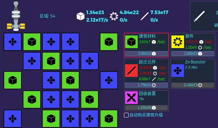 游戏中的隐藏成就 在设置界面输入秘密代码 进入屏幕顶部的设置-基本部分 找到下方带有文本框的【输入代码】 输入secret并点击验证代码 基础绿色 清理13号区域后,你将解锁基地。解锁第一个基地的所有网格区块,并用【材料】方块(绿色的那些)填满它们。 在设置中失败。 在【声望】选项卡中,你可以重置声望来更改飞船的武器和护盾,在60秒内执行两次此操作。 在【声望】选项卡中,你可以升级飞船以更改其武器和护盾。当你到达第5扇区及以上时,返回你拥有的第一艘初始飞船。 说明:一旦你使用除第一艘飞船外的任何飞船通过第5扇区后,进入【声望】选项卡并找到那里的升级功能。选择第一艘飞船,然后点击【升级】按钮对其进行升级。基地的秘密代码(在设置选项卡中输入) 当你清理完39号区域,解锁3号基地后 找到下方带有文本框的“输入代码” 输入now并点击验证代码 传送完全失败 当你清理完21号区域,解锁“传送”选项卡后,等待传送核心充能完毕,然后在某个任务中打开传送 接着以0单位精华关闭传送完成八次过载 在【曲速】选项卡中,你需要拥有8个及以上的曲速核心,且所有核心都必须完全充满。 然后开始任务并按下充能按钮8次。 你可以通过使用合成点数和【曲速】中的【升级】选项卡来解锁更多核心。 年度洞察力 通过清理第50扇区解锁船员后 获得当前年度(2024年)的总最大洞察力。指南结束