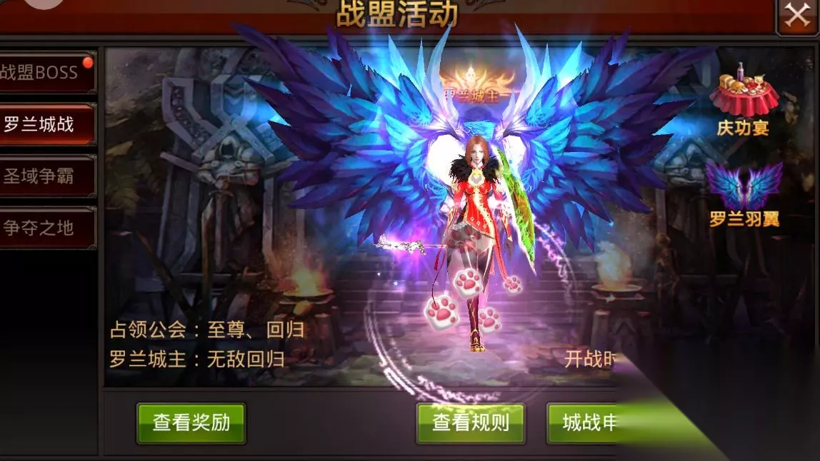 罗兰城战是老玩家们都特别熟悉的战盟活动了,新区的伙伴们可能还不太认识罗兰城战的玩法规则,现在就给新区的小伙伴们介绍一下罗兰城战的参加方法、和玩法规则。 罗兰城战活动服务器开服的5天后的21:10开启,新服玩家一定要关注一下活动开启时间,提前城战申请,新服有更多的城战福利,不要错过活动。 PS:新服活动结束以后,每星期六21:10分准时开启罗兰城战,如没有战盟申请竞价则所有战盟都不能参加罗兰城战。 城战申请方法:活动城战申请,战盟盟主点击人物头像,在游戏界面上当找到战盟,从战盟点击进入战盟活动→罗兰城战,右下角城战申请,进入点击竞价申请城战,竞技城战有限制时间,关注一下申请列表的右下角的竞价结束倒计时,请在竞价结束前完成竞价。 活动路线:进入城内活动地图以后,等待大门开启,通过通道前往南方方向寻找罗兰峡谷内的3面旗帜,占领西方旗帜和东方旗帜,城内的所有战盟成员均可获得相应的增益BUFF,占领北方旗帜(也就是我们所看到的中间旗帜),城内的所有战盟成员死亡之后在这面旗帜附近复活,所以这面旗帜是一定要占领并且守护好的。 罗兰龙塔:在复活旗帜的最北方,优先进入龙塔的战盟则得到龙塔归属,如果龙塔内没有其他战盟争夺,则占领龙塔。城战结束时占领龙塔的战盟为获胜战盟,所以,在守护旗帜的同时,龙塔也必须要有成员占领。 罗兰胜利奖励:获胜战盟盟主可获得专属称号罗兰城主和城主之翼翅膀,盟主佩戴后提升角色属性,战盟的所有成员获得成员专属称号罗兰贵族。 罗兰城主还将在勇者大陆树立威武霸气的雕像。 每晚20:00点还将有罗兰庆功盛宴,由罗兰城主开启,吃庆功宴的所有玩家将获得相应的奖励,庆功宴结束后盟主也将获得丰厚的庆功宴结束奖励,奖励以邮件形式发放至盟主账号。 小伙伴们积极参加战盟活动罗兰城战,获得丰厚的奖励吧~